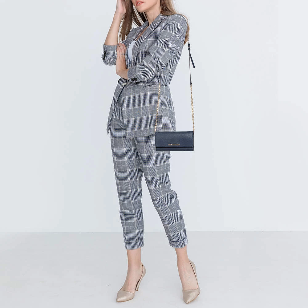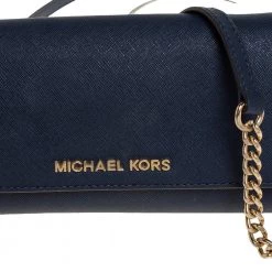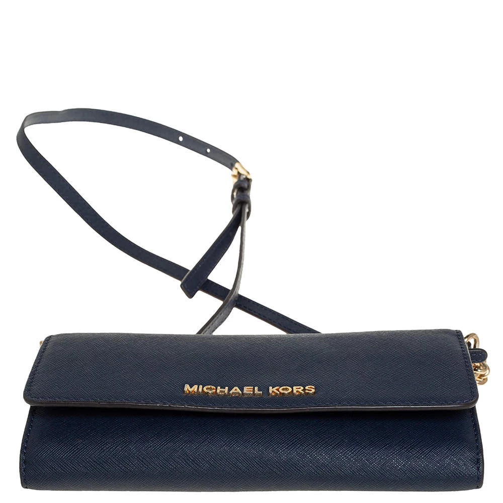 Timelessly elegant and stylish, Michael Kors’s collections capture the effortless, nonchalant finesse of the modern woman. Crafted from textured leather in a blue hue, this chic Jet Set wallet features a compartmentalized interior with a flap. The sleek, understated silhouette is punctuated with a chain strap.
