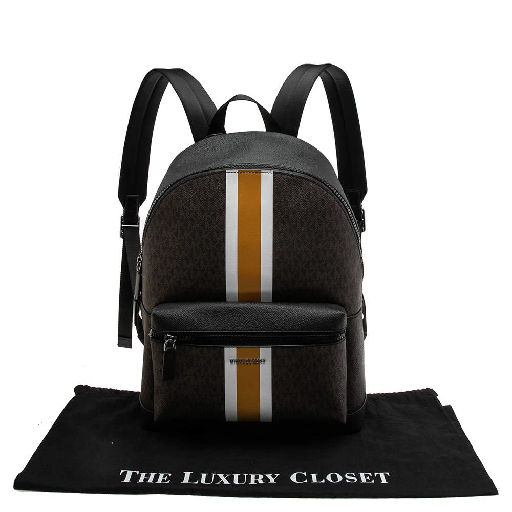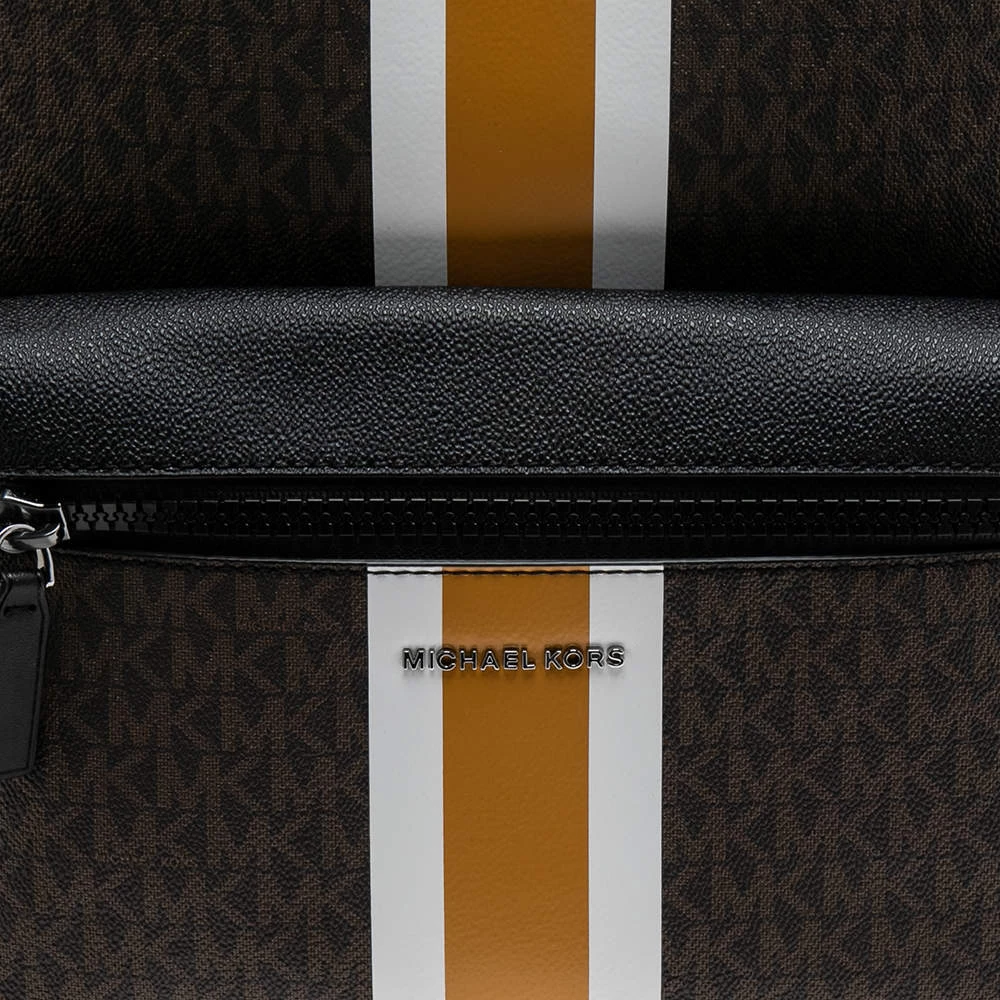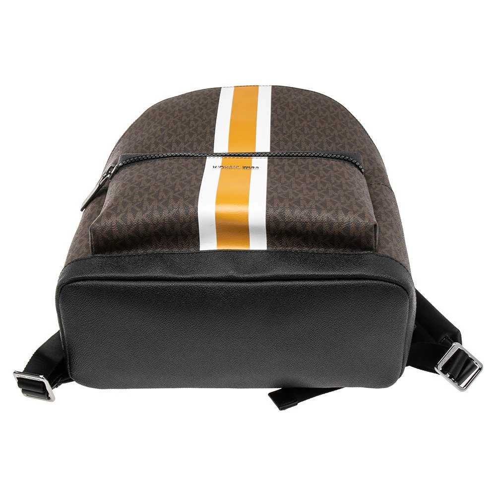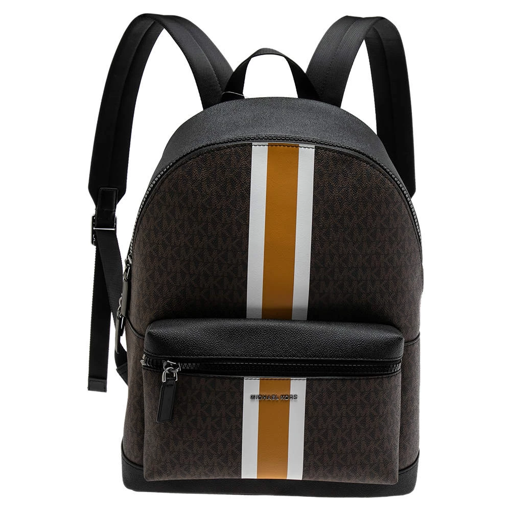 This Cooper backpack from the House of Michael Kors is as stunning as it looks! It is made from brown-black Signature coated canvas on the exterior and comes with black-toned fittings. Its sturdy shape is complemented by shoulder straps. Carry this backpack and be at complete ease!