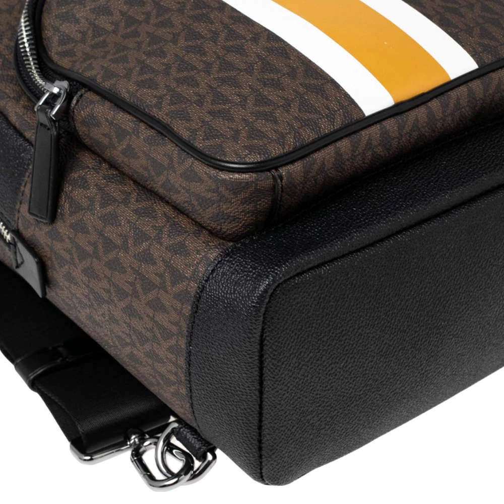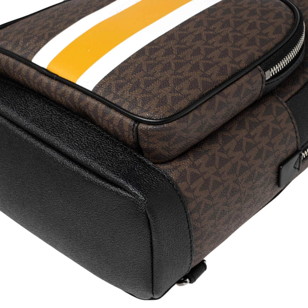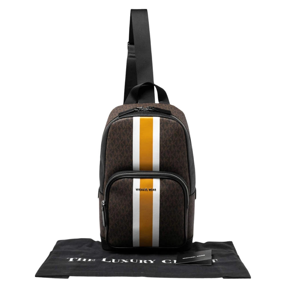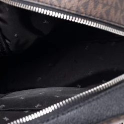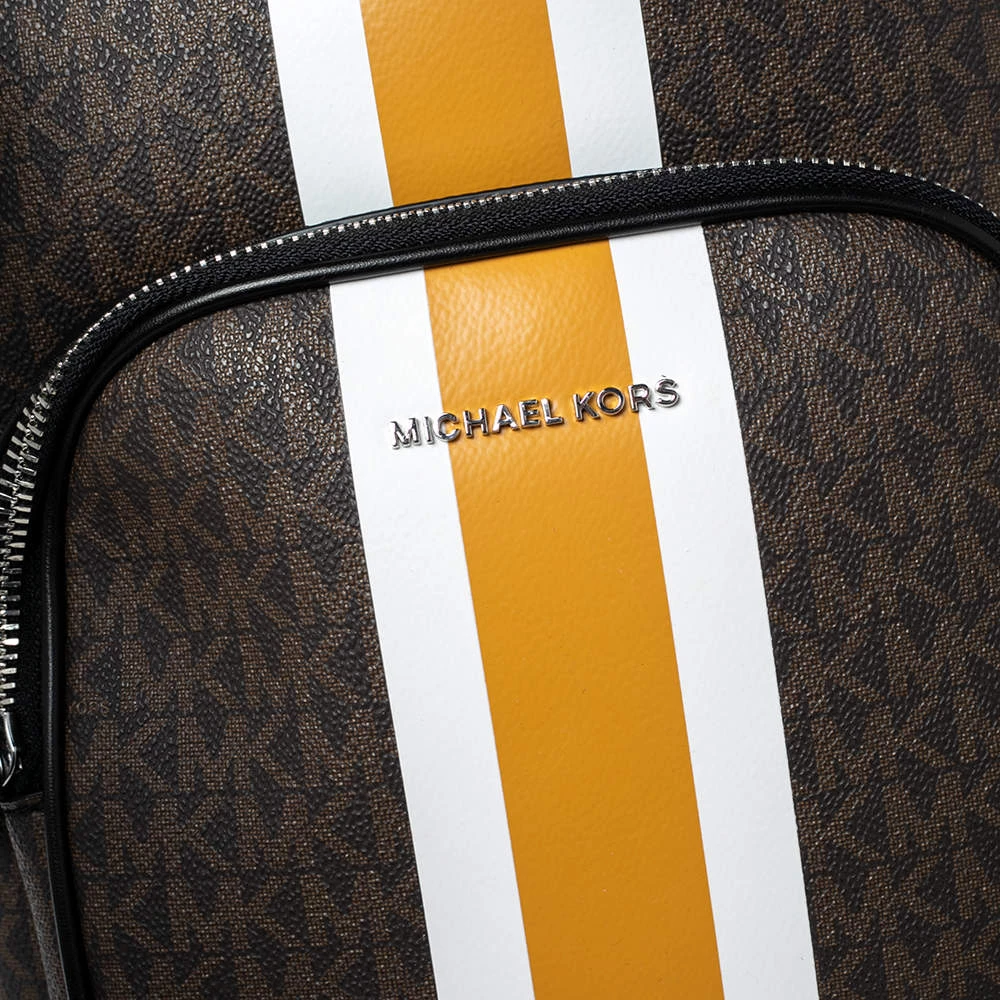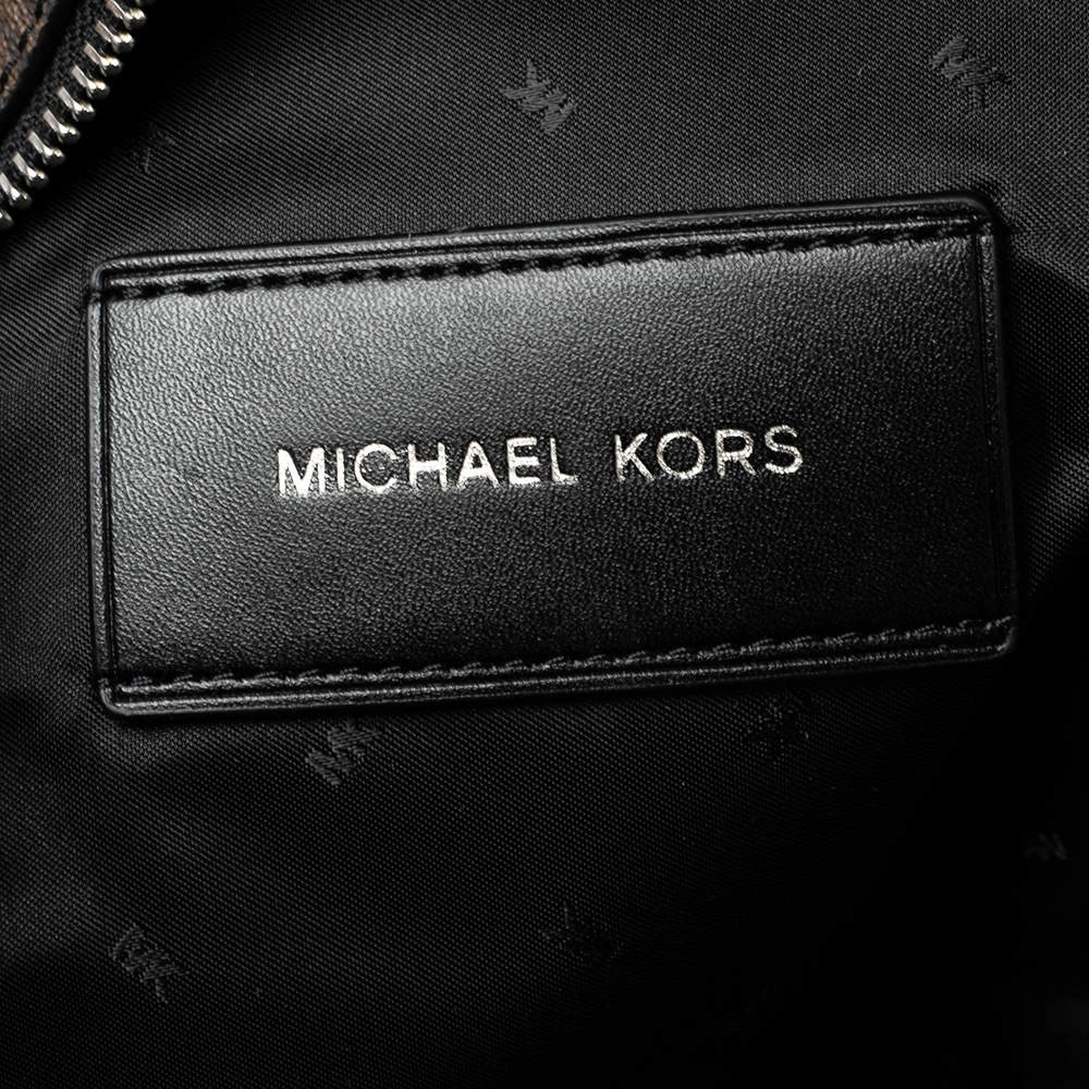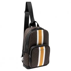 This Cooper Commuter sling backpack from the House of Michael Kors is as stunning as it looks! It is made from brown-black Signature coated canvas on the exterior and comes with silver-toned fittings. Its sturdy shape is complemented by a shoulder strap. Carry this backpack and be at complete ease!