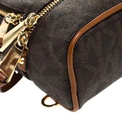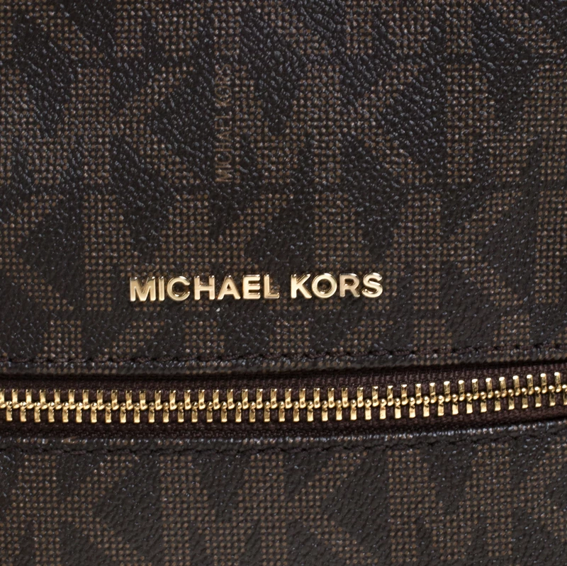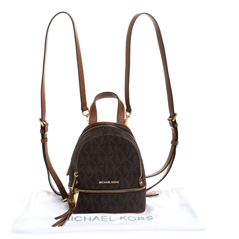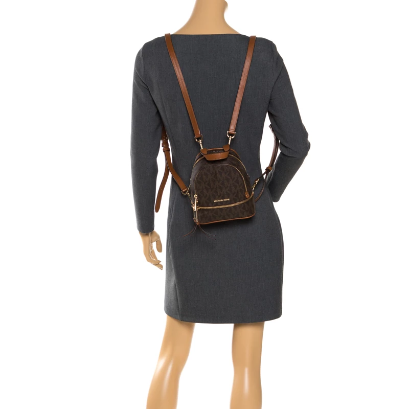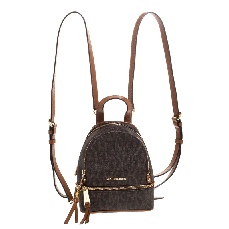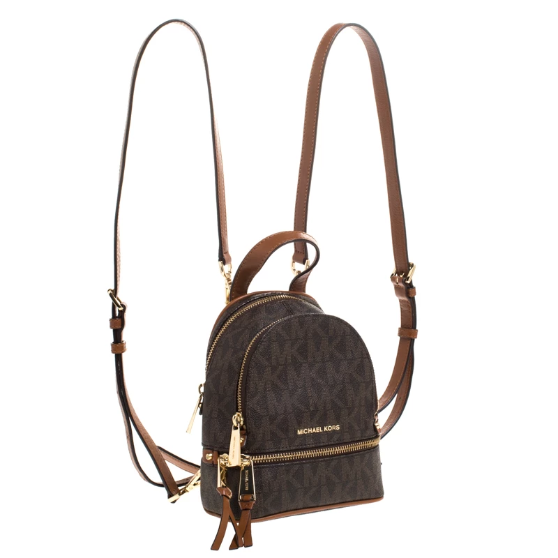 Get set to look uber stylish with this grey Rhea backpack from Michael Kors. Crafted from coated canvas, it flaunts dual compartments secured by zippers, a zip pocket on the front and shoulder straps. This piece is very much in vogue, so get your hands on this today!