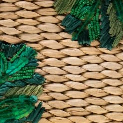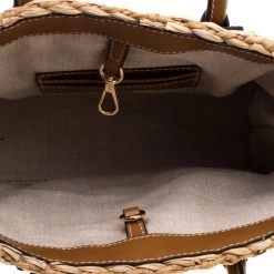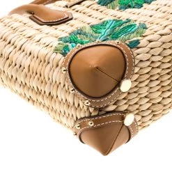 A pretty summer bag and one you can carry to brunches with friends or on a lazy day to the park or beach, this Michael Kors design will come in handy on many days. It is woven from straw and it has leather patches, leather handles as well as embroidery and beads in green. The bag also has a removable shoulder strap.