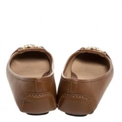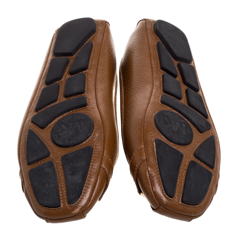 The feminine shape and minimal design of this Michael Kors flat instill this pair with modern balance. Crafted from brown leather, it features an MK medallion in gold-tone on the upper. A rubber sole makes it a must-have for both weekend errands and weekday commutes.