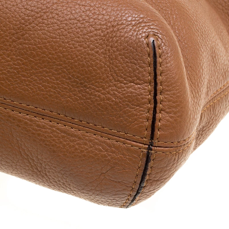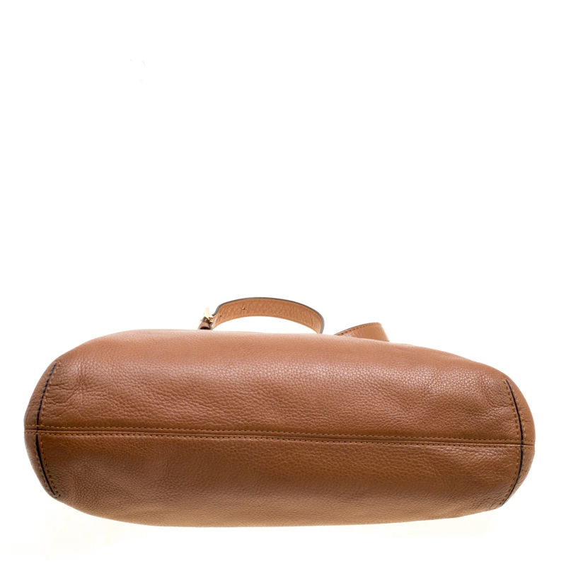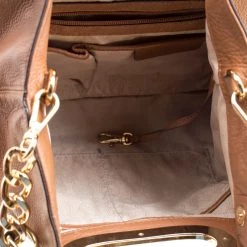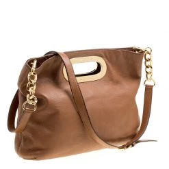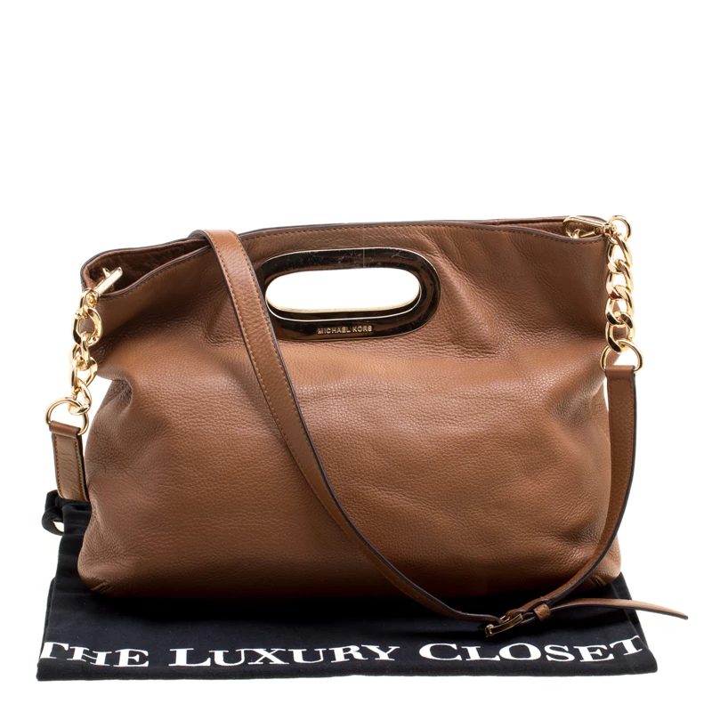 This lovely Michael Kors Berkley bag is sure to be an amazing addition to your wardrobe! The brown bag is crafted from leather and features dual inbuilt gold-tone handles at the top. It flaunts a detachable shoulder strap and opens to a spacious fabric-lined interior that can easily hold all your daily essentials. Carry it with elan!
