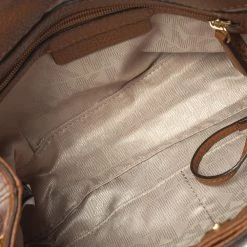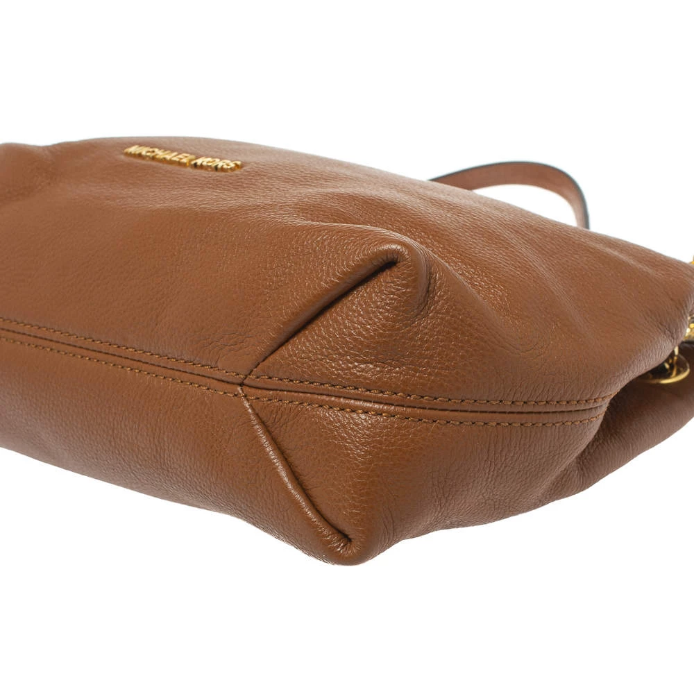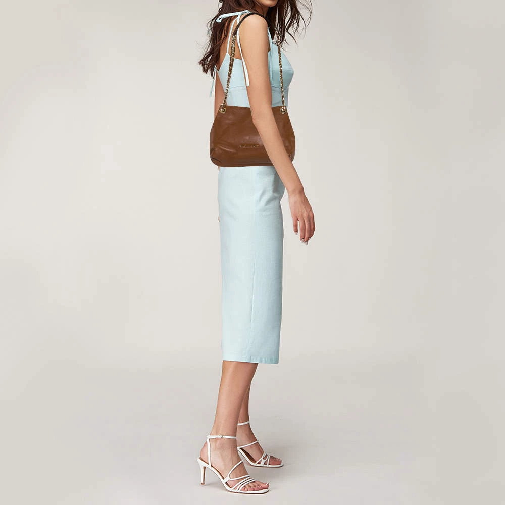 Comfortable to carry without compromising on style, this Michael Kors hobo is crafted from leather. It features chain-link handles with leather shoulder rest, gold-tone metal detailing, and a nylon-lined interior with enough space for your necessities.