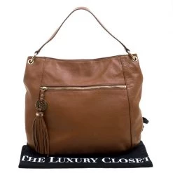 This Michael Kors hobo is crafted from brown leather and features a single handle strap, a zip pocket on the front and a Michel Kors charm with tassel detailing. The top zip closure that opens to a spacious nylon lined interior, houses a slip pocket and a zip pocket. This hobo is perfect to carry all your essentials.