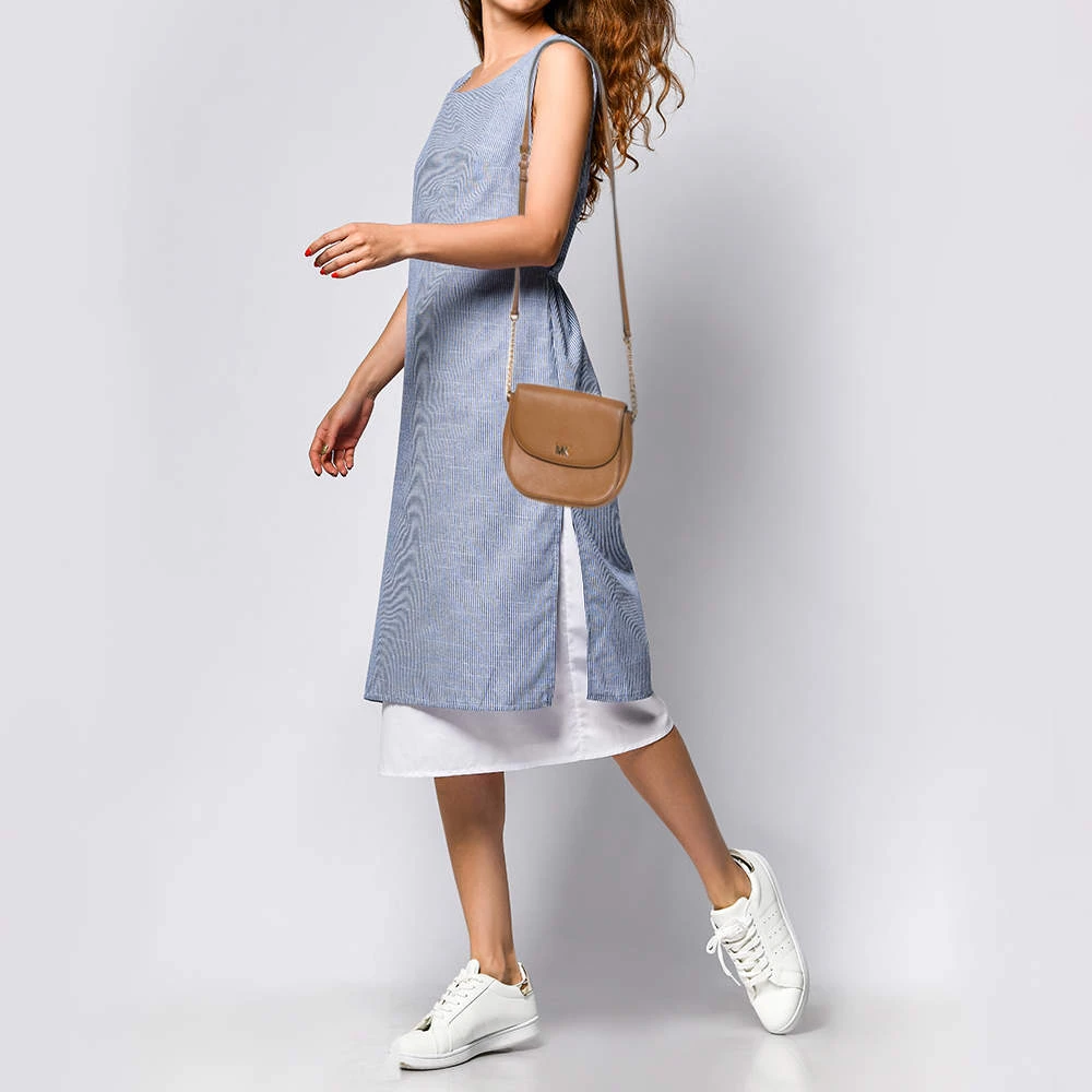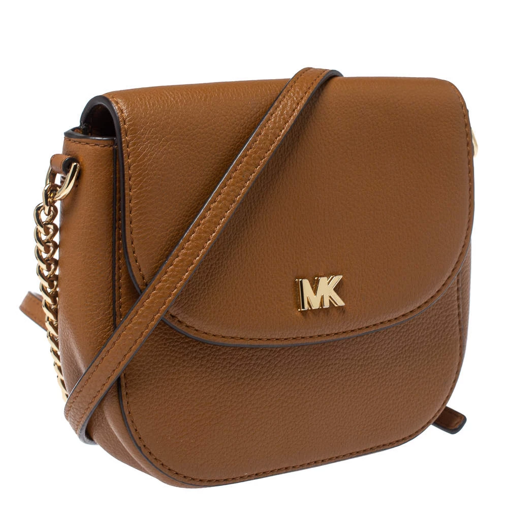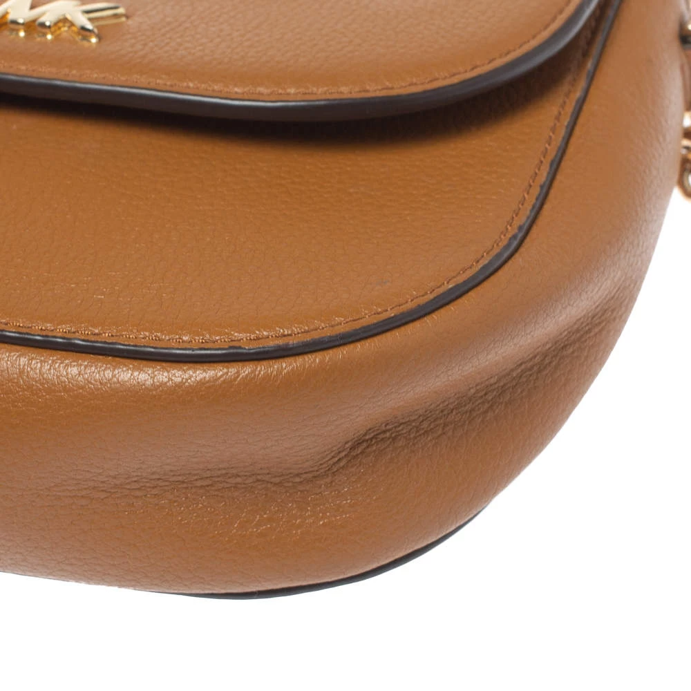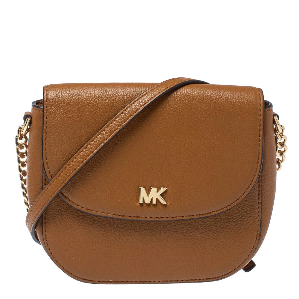 Get an urban chic look when you pair this Michael Kors crossbody bag with your favorite outfits. Crafted from leather in a versatile brown hue, the front flap is accented with the logo that opens to a nylon-lined interior spacious enough for your essentials. The creation suspends from a chain and leather strap that can be adjusted to achieve the desired drop.