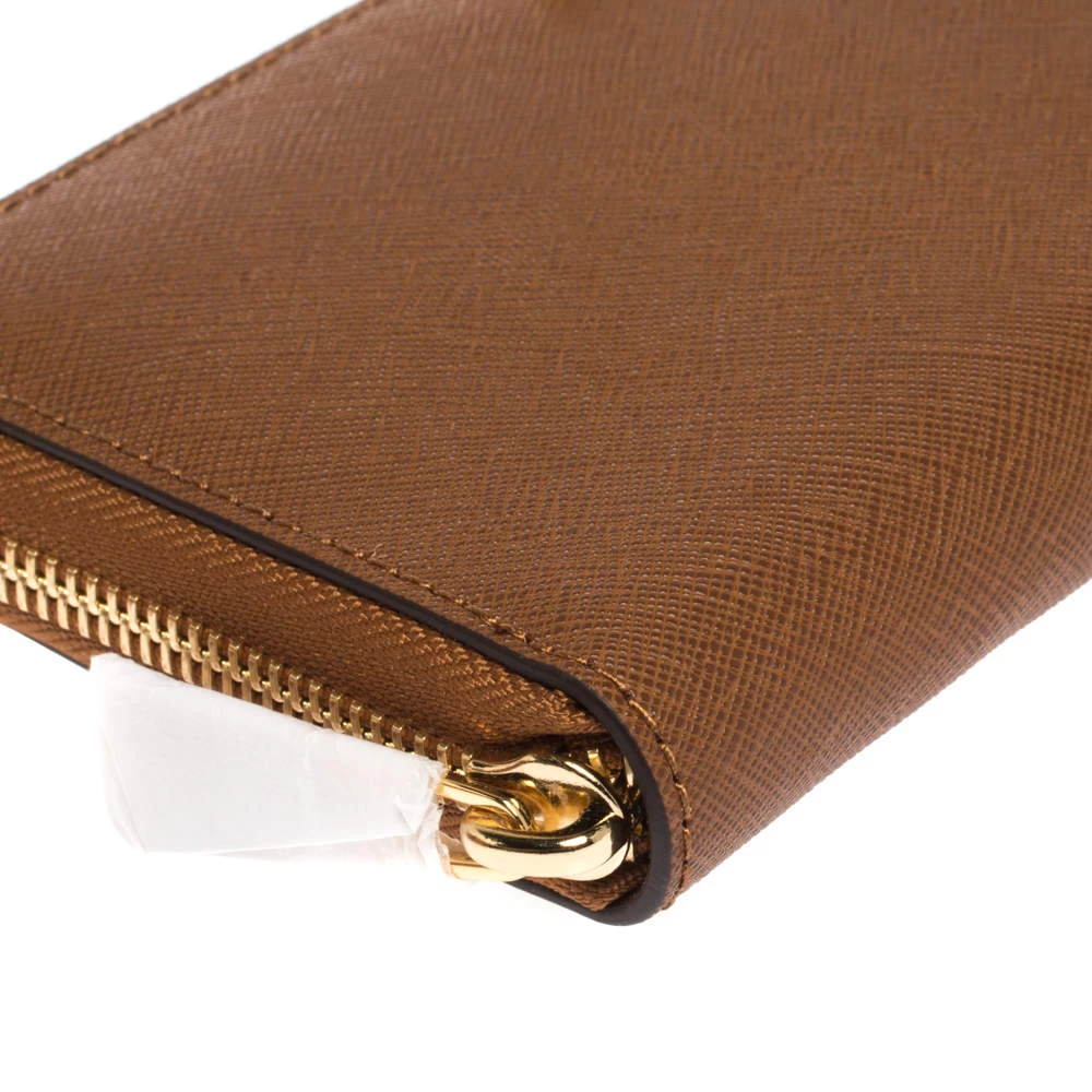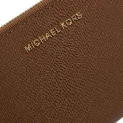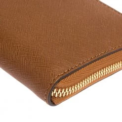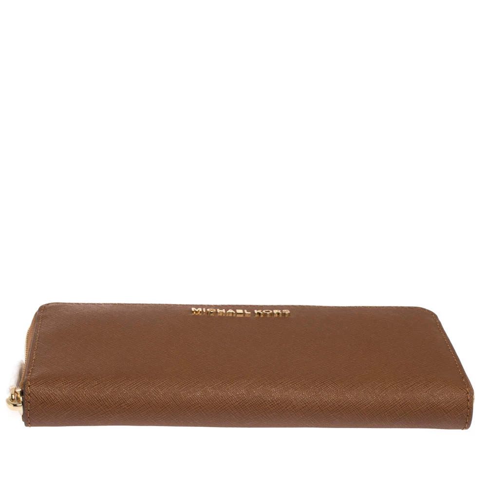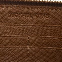 Sleek and easy to carry, this continental wallet from Michael Kors is crafted from brown-hued leather. The wallet comes with a zip closure that opens to a leather and nylon-lined interior. Organize your essentials in open compartments, multiple card slots, and a coin pocket.