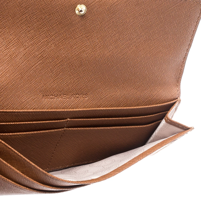 This lovely Jet Set wallet from Michael Kors will surely delight your impeccable style. It has been crafted from leather and designed in a flap style. It also brings multiple slots and compartments for your cash and cards.