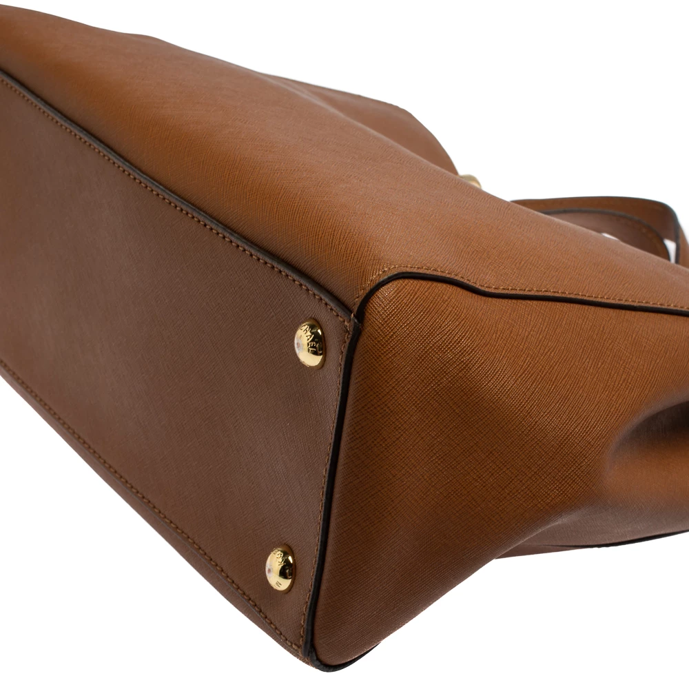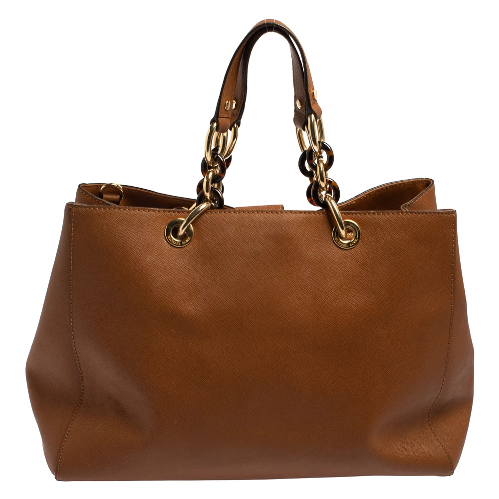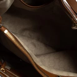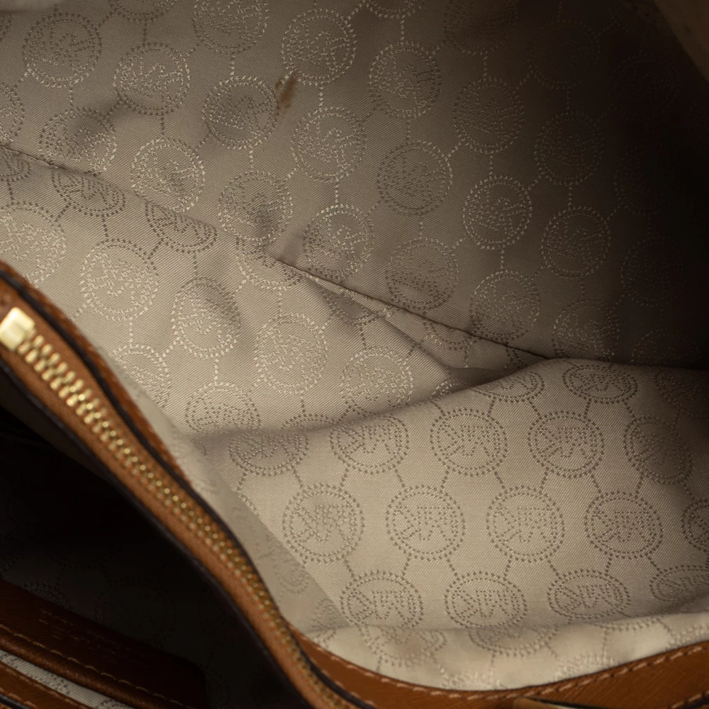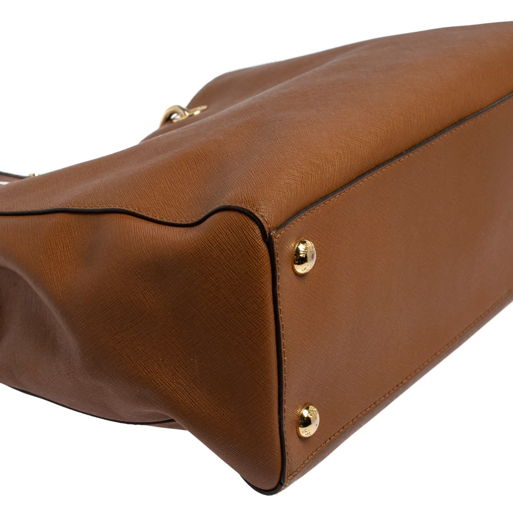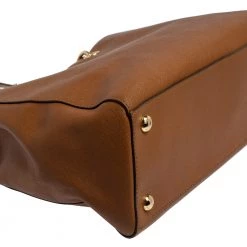 This Cynthia tote by Michael Kors is a bag ready to blend in with the busy life of the women of today. Meticulously crafted from leather, it features a brown hue and two handles as well as a shoulder strap for you to parade it. The bag is equipped with a spacious fabric-lined interior that has a zip compartment. Complete with gold-tone hardware and their MK charm, this bag will make an ideal buy.