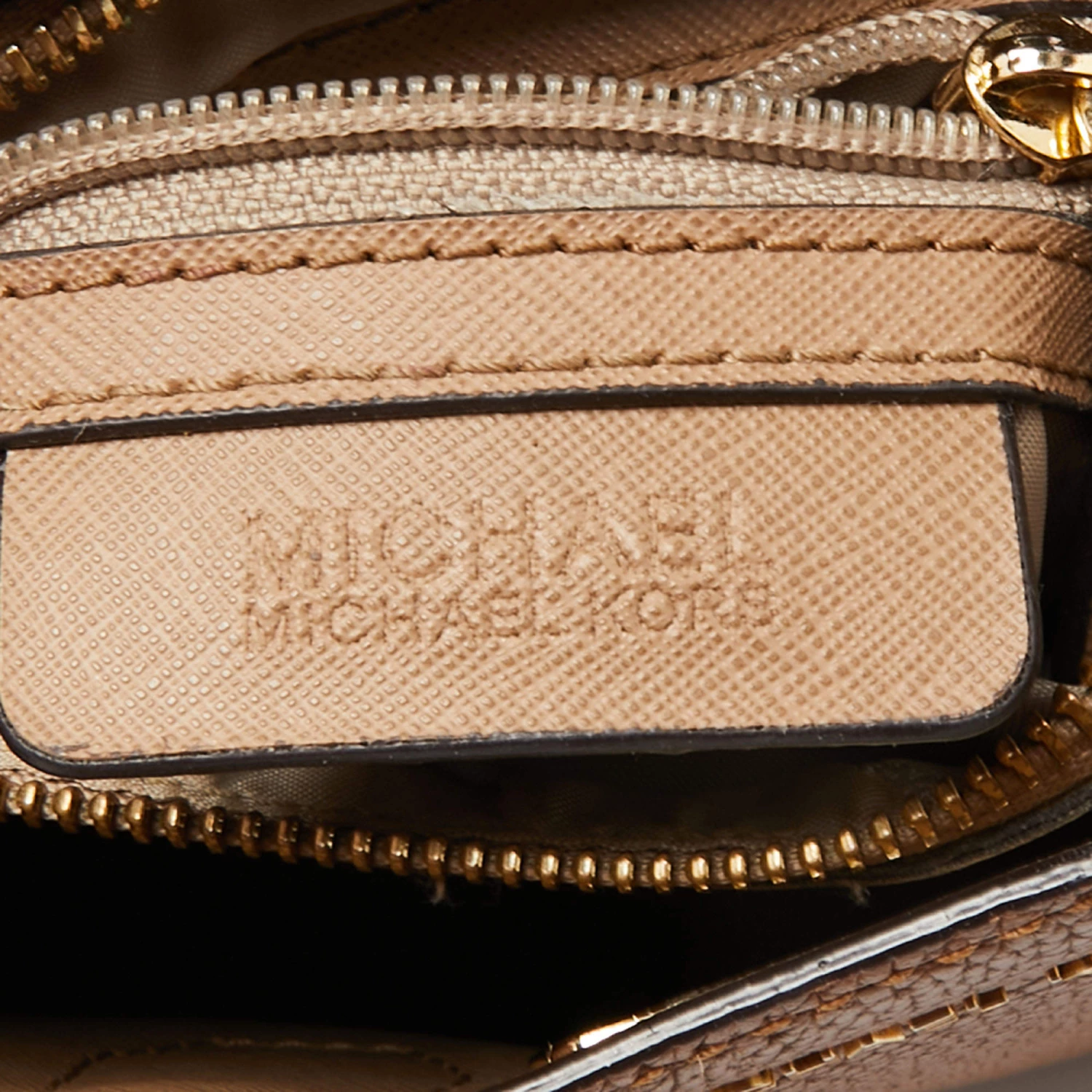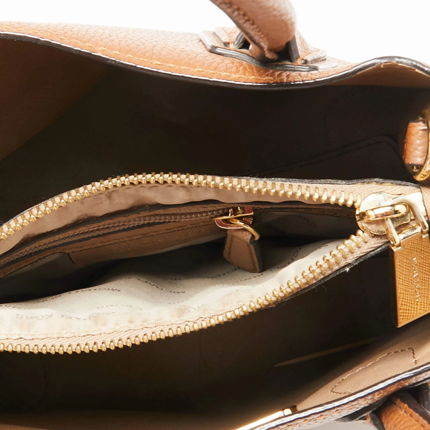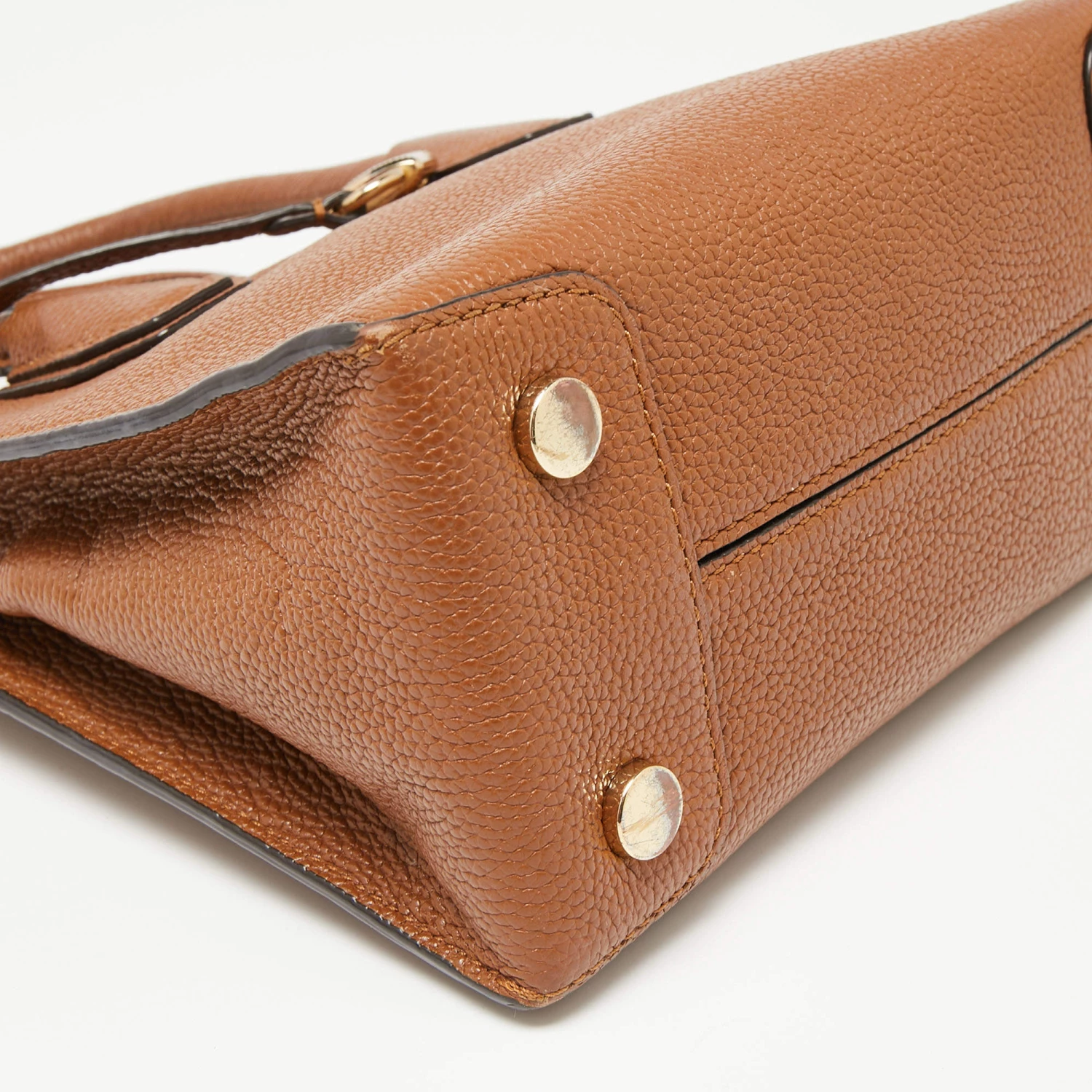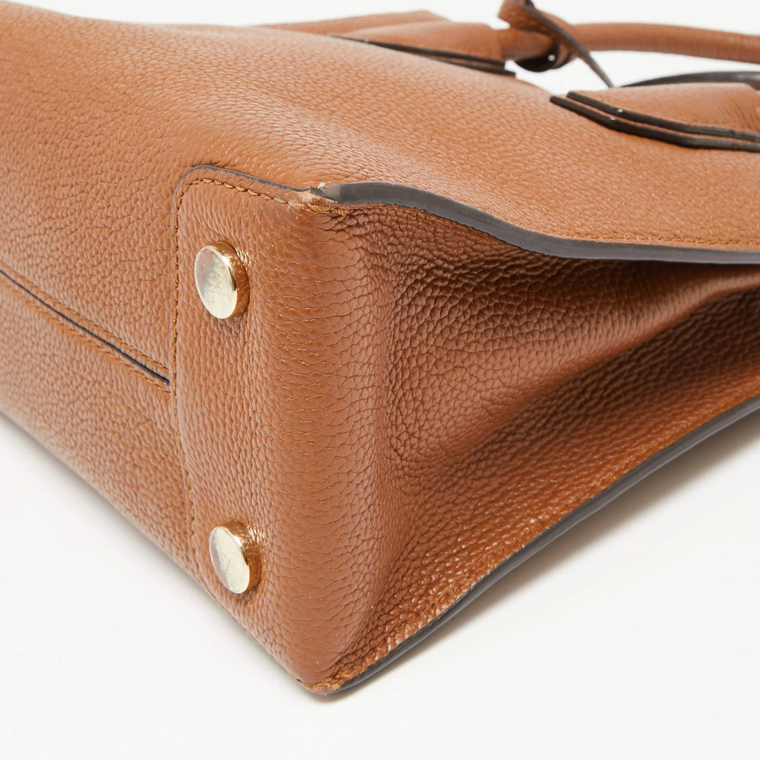 Made using brown leather, this Michael Kors tote brings a convenient size and a refined appeal. It features two handles, a detachable strap, gold-tone hardware, and a lined interior.