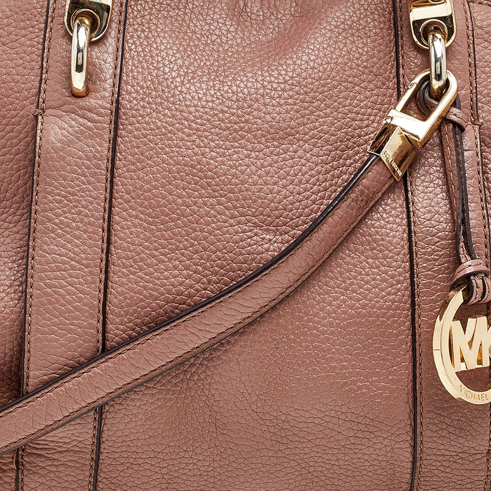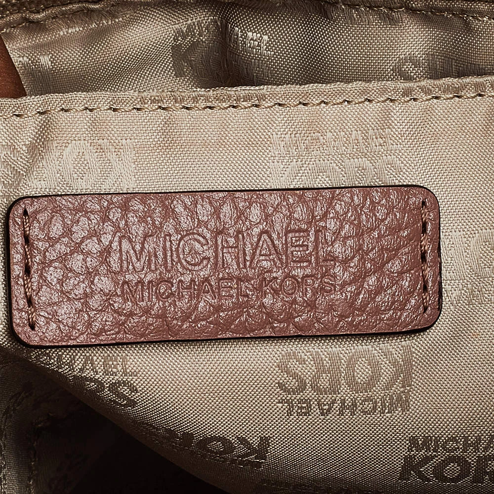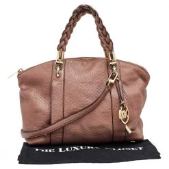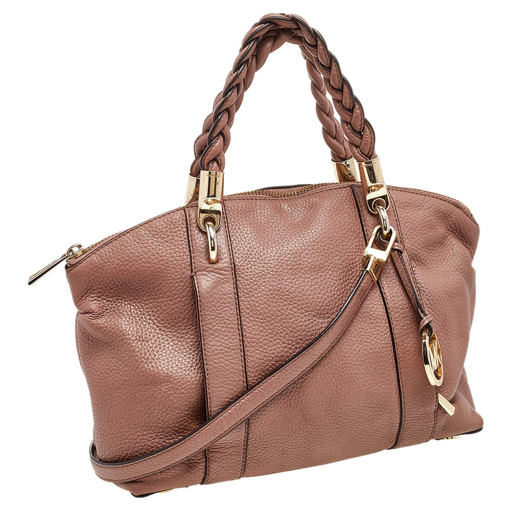 Flaunt an astonishing style with this marvelous satchel from Michael Kors. The outer surface of this satchel features brown leather with a gold-toned MK charm hanging from the front. It is held by a beautifully braided handle. This chic bag is perfect for daily use.