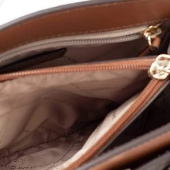 Michael Kors handbags are every fashionista’s dream come true. This Mott tote is stylish and also functional. Made from Monogram canvas and leather in a brown hue, it comes with dual handles and a sturdy shape. The fabric-lined interior ensures enough space for your essentials.