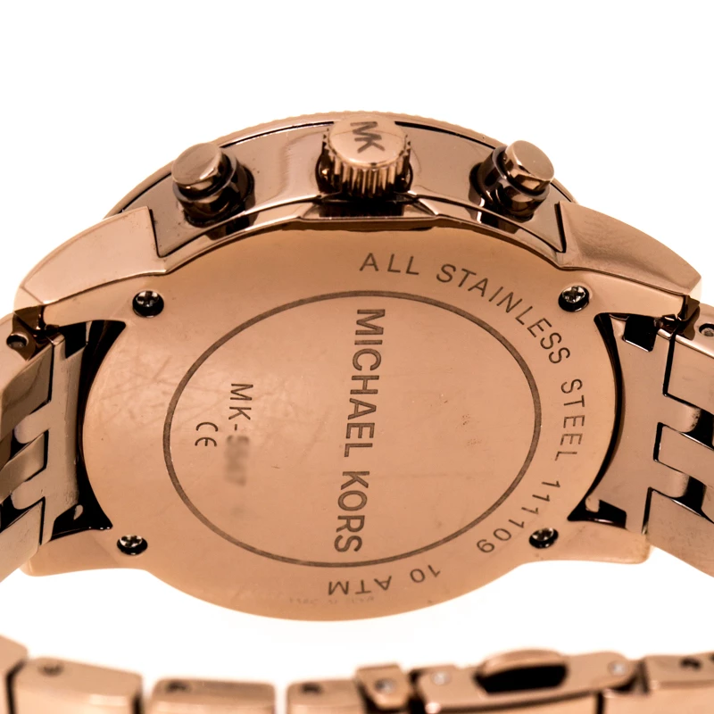 Awaiting to be yours is this stunner of a watch from Michael Kors! Crafted with beauty using brown ion-coated stainless steel, the quartz watch is lovely. It brings a mother of pearl dial that has a date window and three subdials. Complete with a water resistance of 100 meters and a deployment clasp, this gorgeous watch is a creation you will love to flaunt.