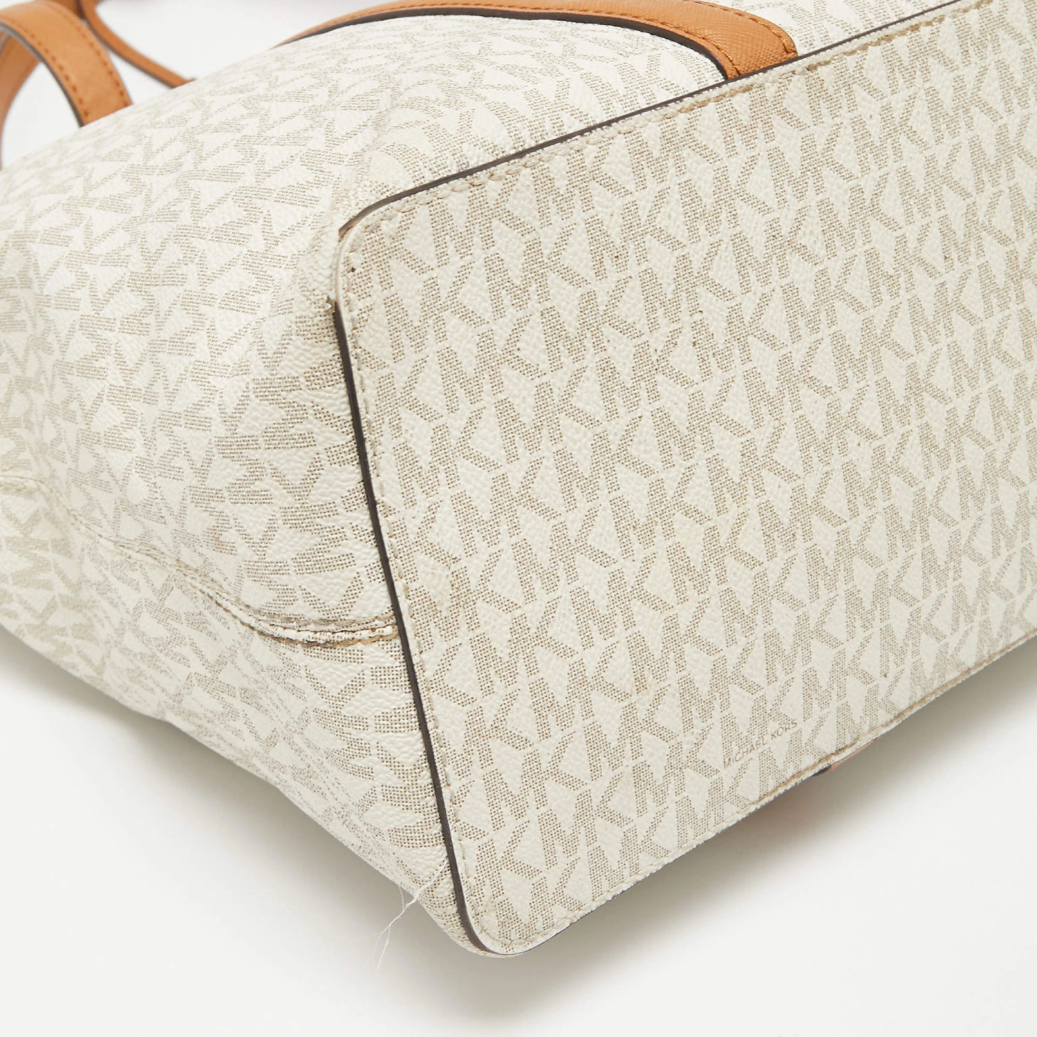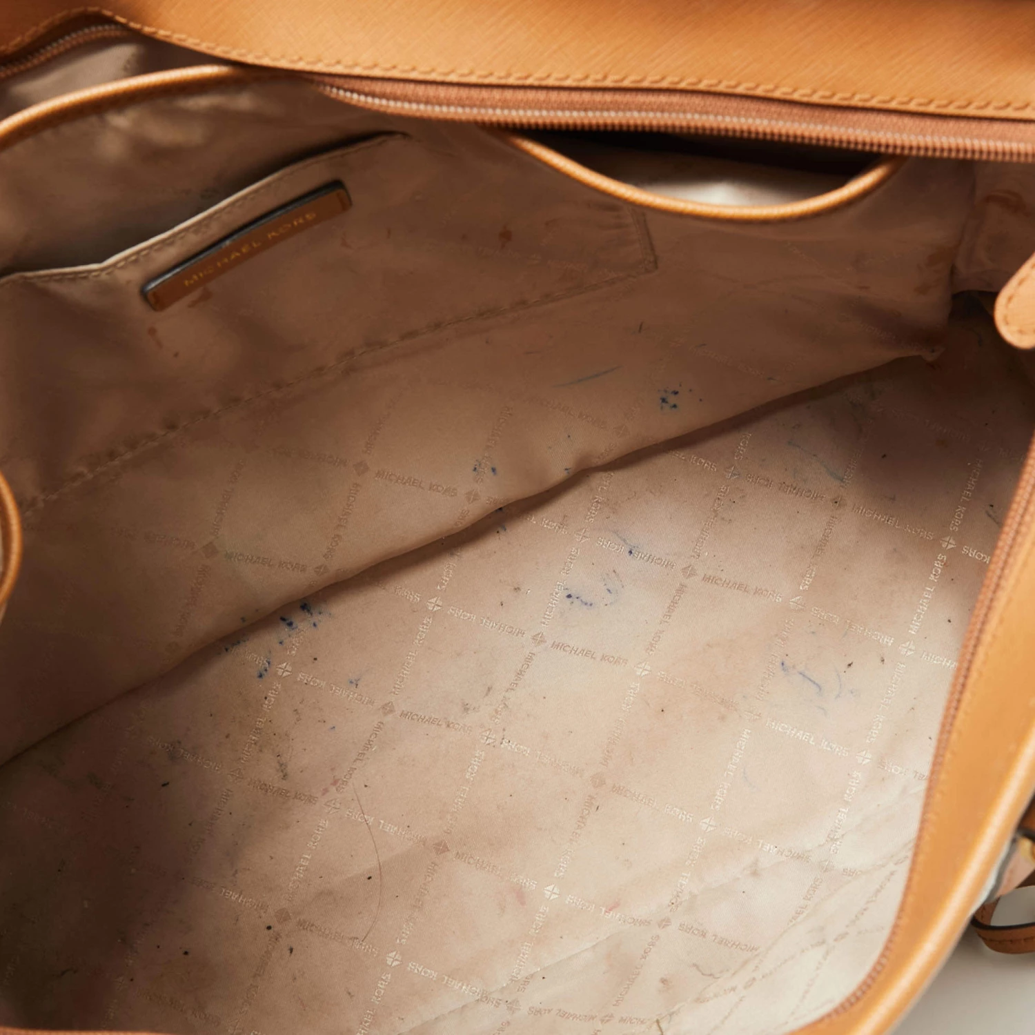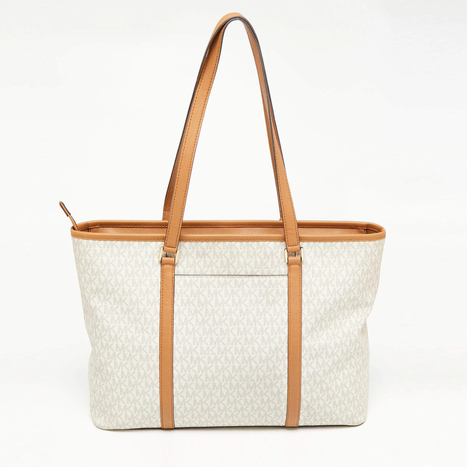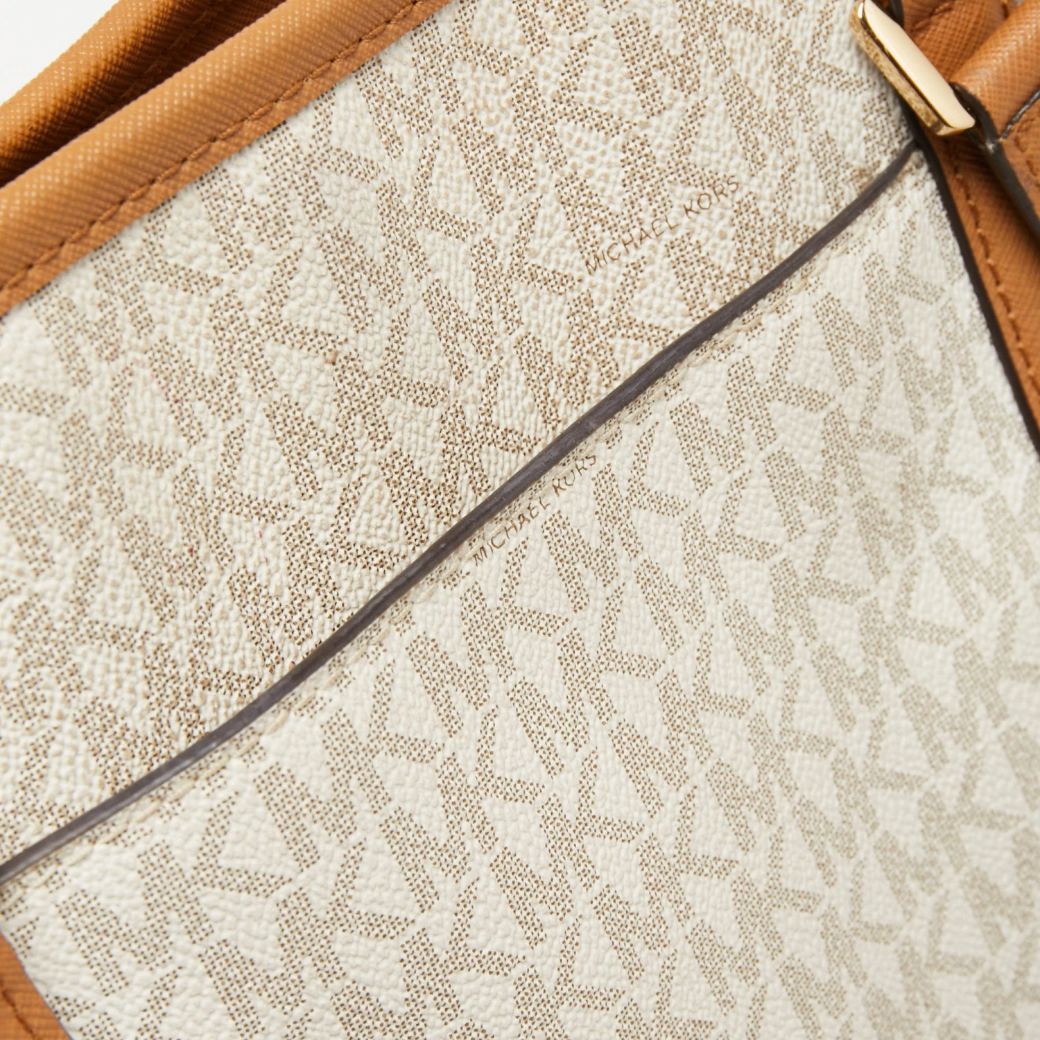 The fabric-lined interior of this Michael Kors Sady tote has an ample amount of space to accommodate your daily essentials. Created from the signature monogram canvas and leather, it is complete with a brand signature on the front, dual handles at the top, and gold-tone hardware.