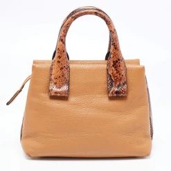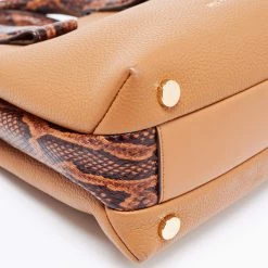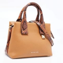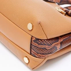 Flaunt your unique aesthetics in fashion with this fabulous Rollins tote from Michael Kors. It is made from brown python-embossed leather on the exterior. It features gold-toned hardware and a suede-lined interior. The structured silhouette of this tote is supported by dual handles.