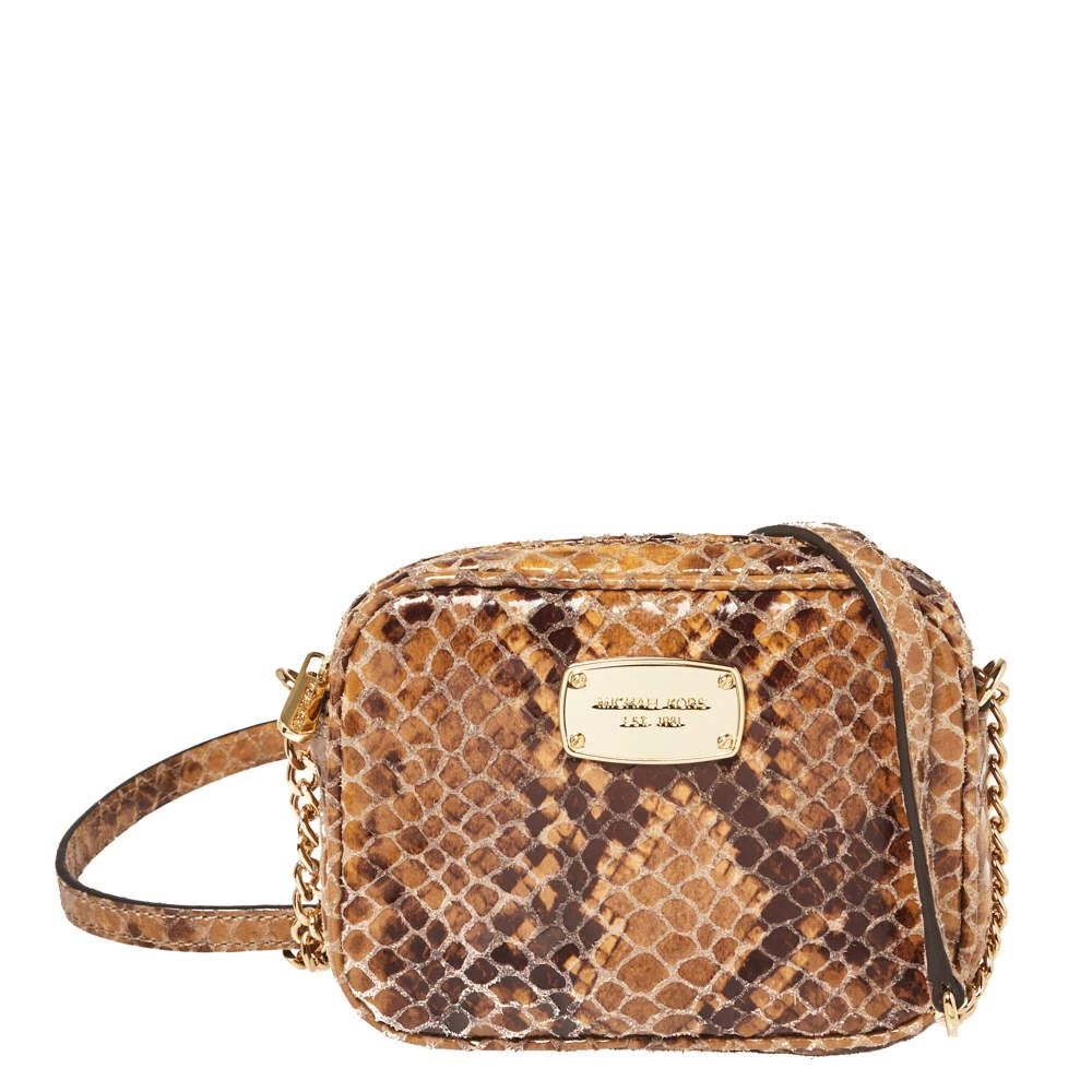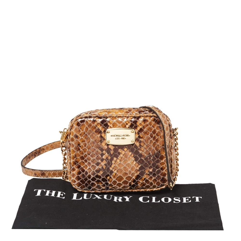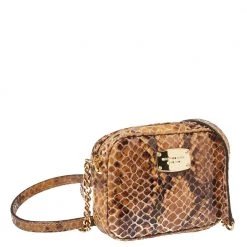 Featuring a rugged python-embossed leather exterior, this wallet is a durable accessory. Showcasing an exclusive design from Michael Kors, this wallet on chain makes for a stylish accessory. Effortlessly carry your daily essentials with this wallet that comes in an attractive brown shade.