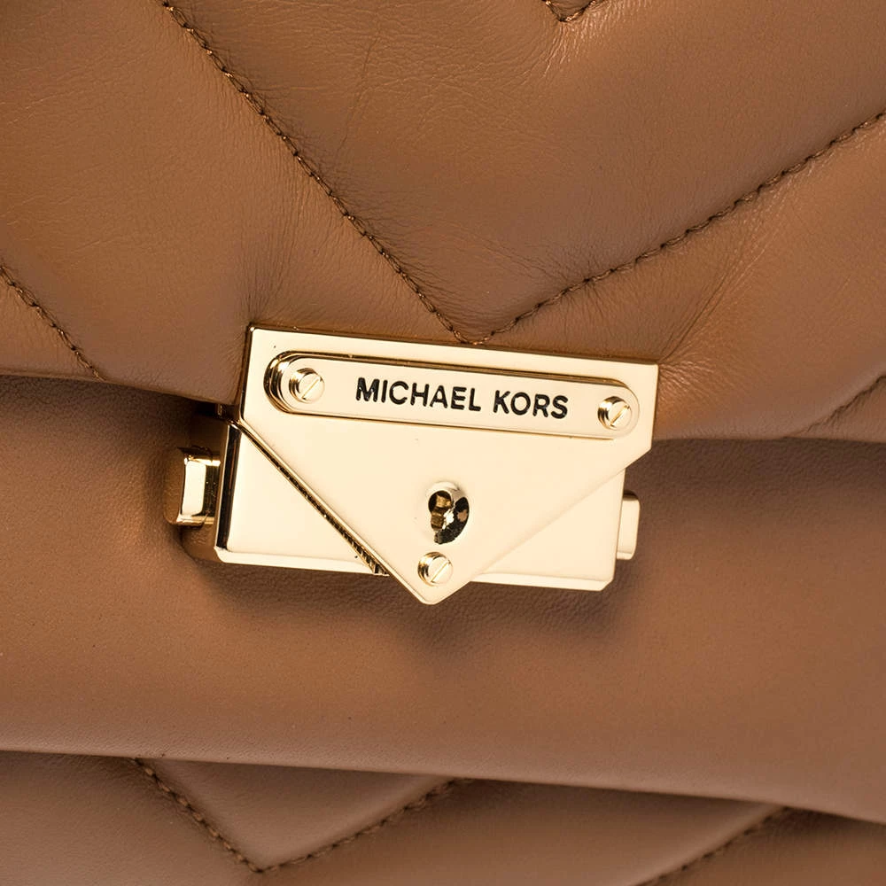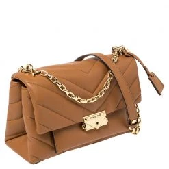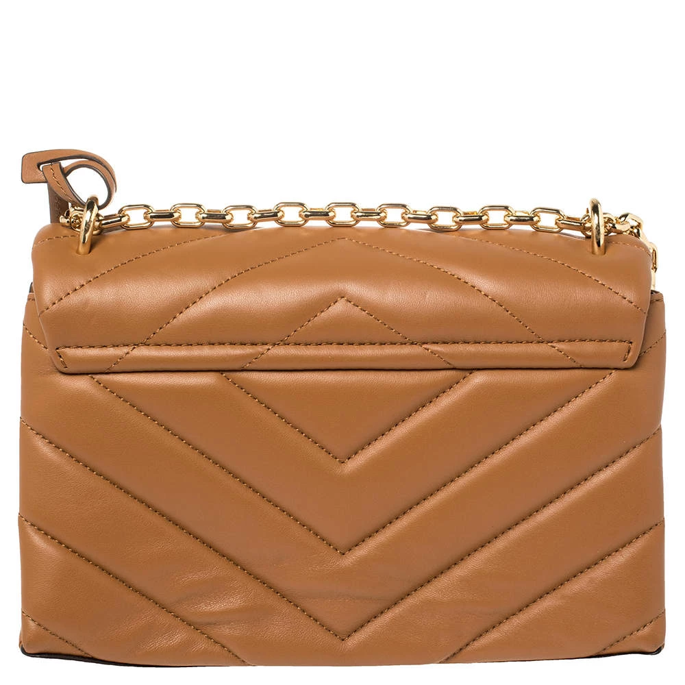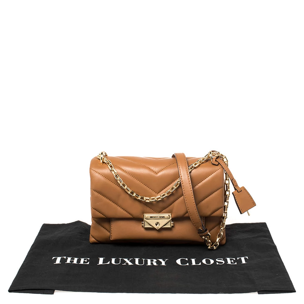 Fall in love with this Sloan bag from Michael Kors. Crafted from brown quilted leather, the bag flaunts a gold-tone lock on the front. It has a spacious suede-lined interior that has a zip pocket. This beauty is complete with a chain-link and leather shoulder strap.