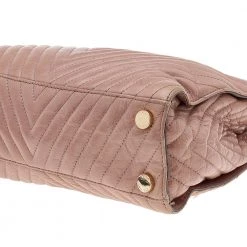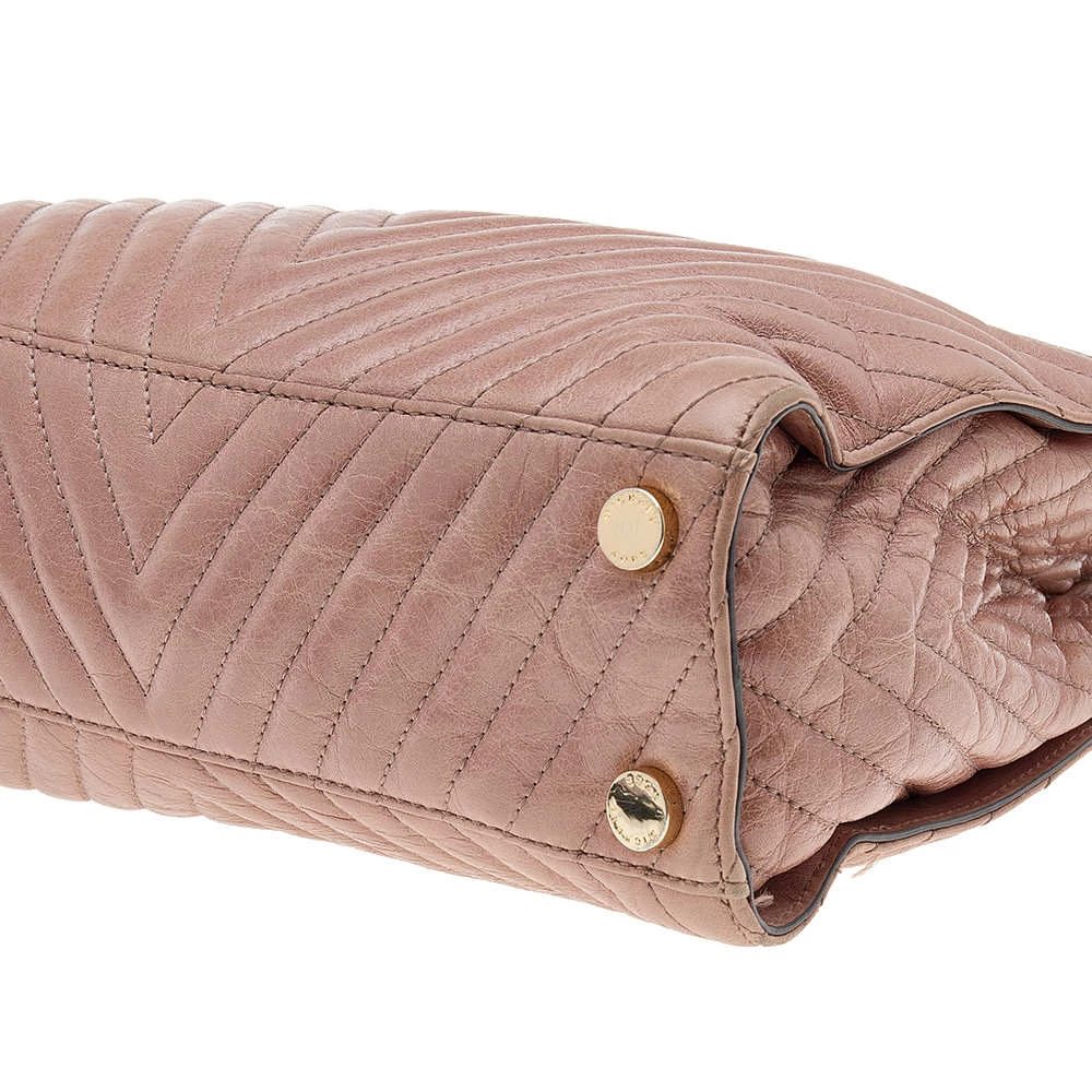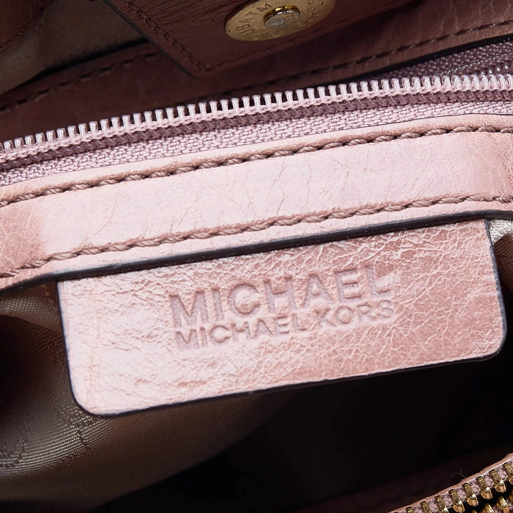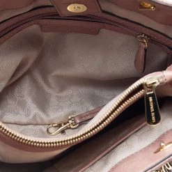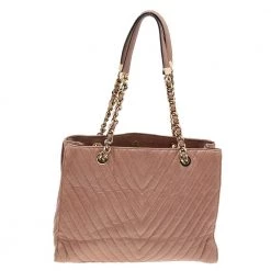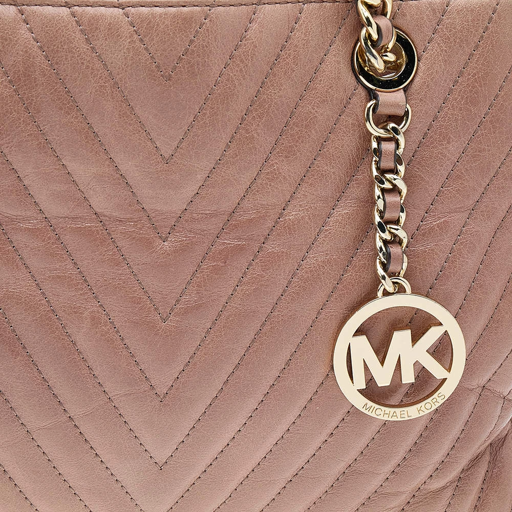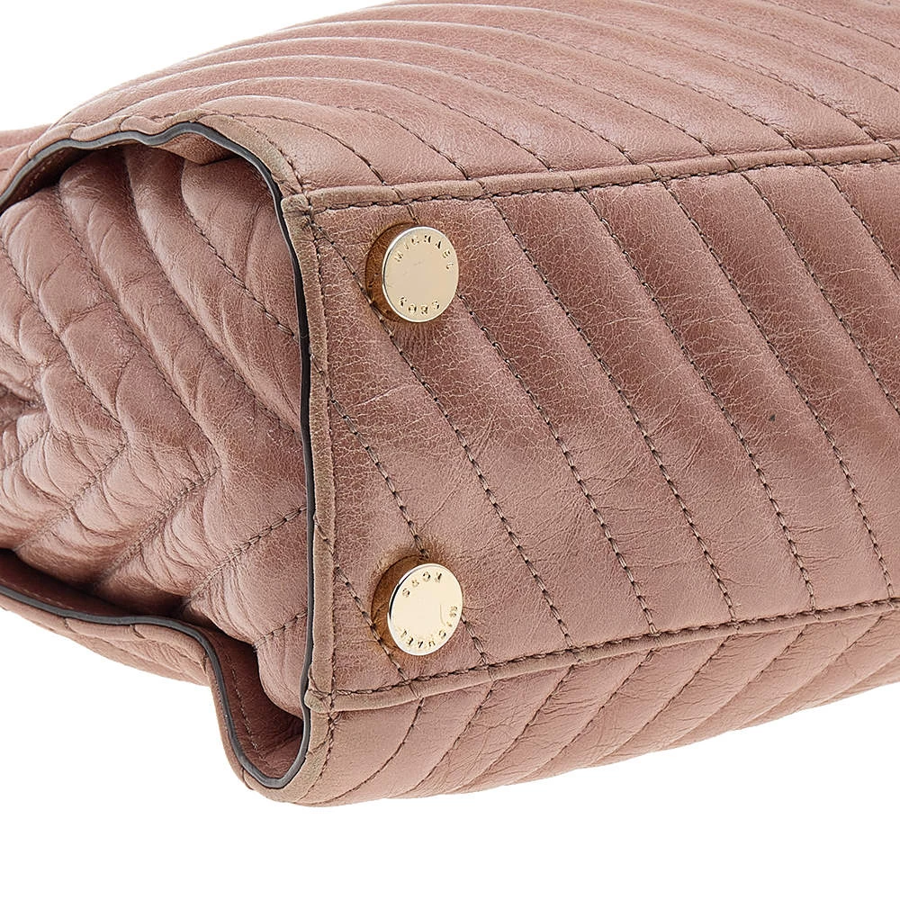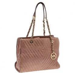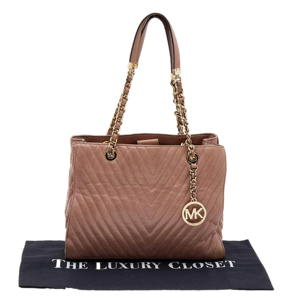 Designed from quilted leather on the exterior, this Michael Kors bag is an example of fine creativity. Lined with fabric, it is equipped with polished gold-tone hardware and double handles. The MK Susan features a snap button closure to secure the spacious interior.