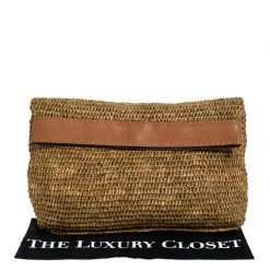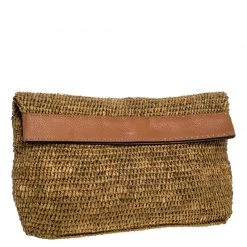 Get ready to outshine others with this slim fold-over clutch by Michael Kors that keeps you fashionable at all casual occasions. This bag comes in a lovely shade of brown and is crafted from leather and raffia. This Santorini clutch is great for a holiday.