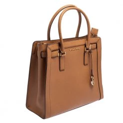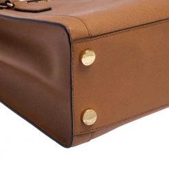 This elegant Michael Kors Dillon tote deserves to be in your closet. Stunning in appeal, the bag features dual handles, a shoulder strap, and an MK charm. It’s crafted from brown Saffiano leather, and the fabric-lined interior is made in a spacious size.