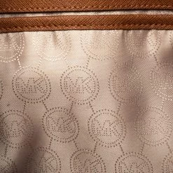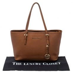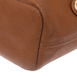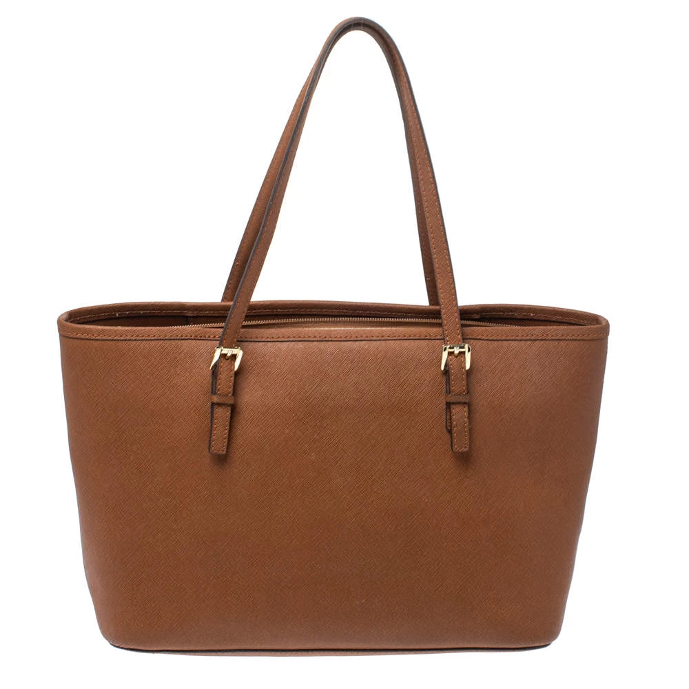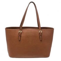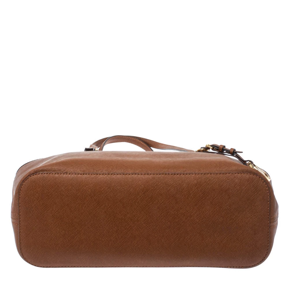 Timelessly elegant and stylish, Michael Kors collections capture the effortless, nonchalant finesse of the modern woman. Crafted from Saffiano leather in a brown hue, this chic Jet Set tote features two handy side pockets and internal pockets secured with a top zip fastening. The sleek, understated silhouette is punctuated with gold-tone hardware- a logo charm and a logo plaque to the front.