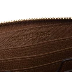 Luxe and classy, this wristlet is from Michael Kors. It has been crafted from brown Saffiano leather and equipped with a zipper leading to multiple slots and a zip pocket for you to neatly carry your essentials. The creation is finished with gold-tone studs and a wristlet strap.