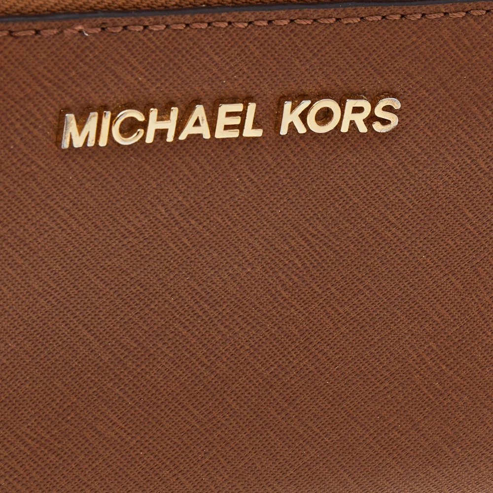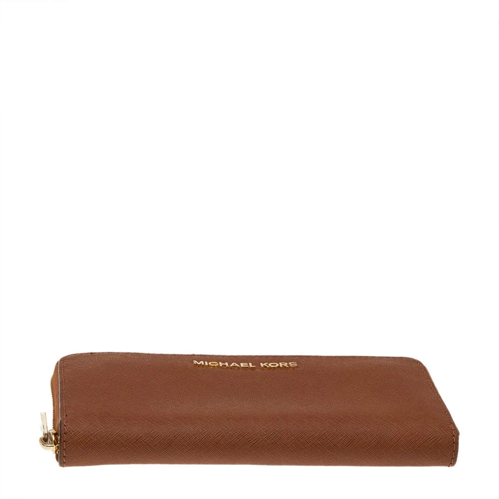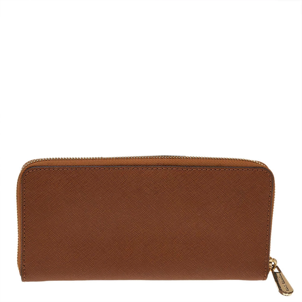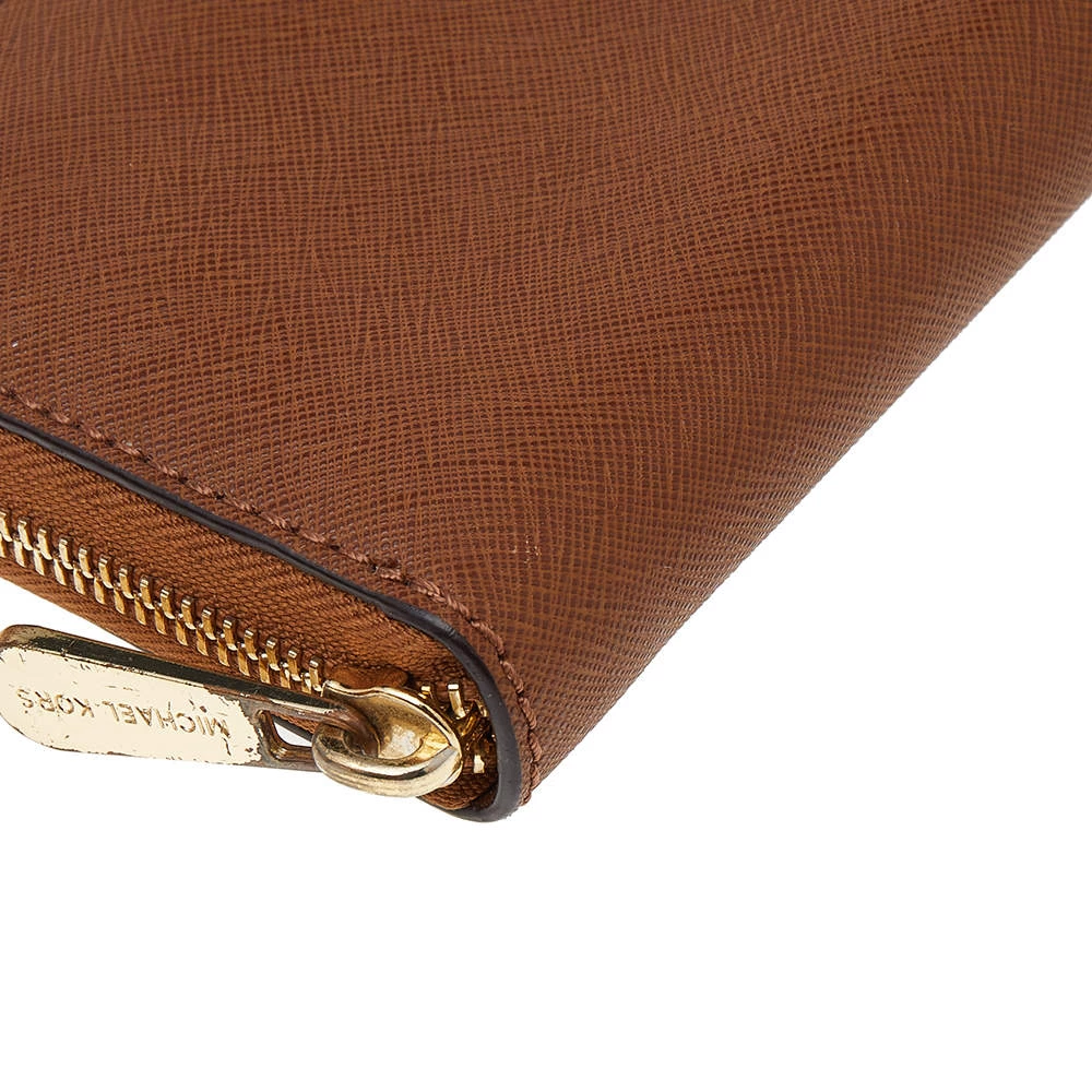 Every woman deserves to have a beautiful wallet in her collection. Crafted from Saffiano leather, this Michael Kors wallet comes with a zip closure that opens to a lined interior housing open compartments for currency and bills, one zipped coin pocket, and multiple card slots