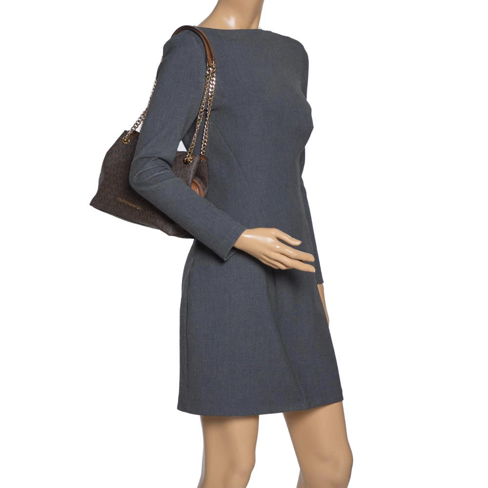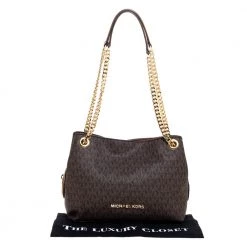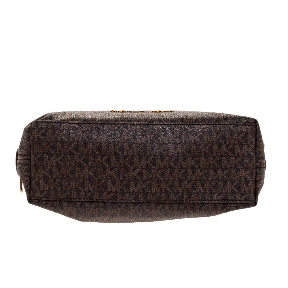 This Michael Kors tote is beautiful in so many ways. From its design to its structure, the signature canvas and leather bag exudes charm and high fashion. It flaunts two shoulder handles for you to swing and a spacious nylon interior to hold all your essentials.