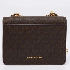 Created from the signature monogram canvas, this Michael Kors bag will add a statement appeal to your outfit. It can be carried easily with a chain-leather shoulder strap and the brand signature adorns its front flap. Lined with fabric, it will easily hold your belongings.