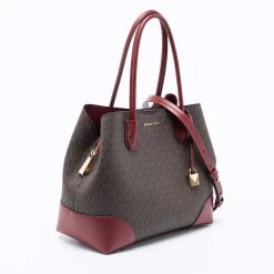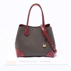 If you are looking for something that reflects chic and luxury, then this Michael Kors satchel is a perfect choice. Crafted from signature coated canvas and leather, it flaunts dual handles at the top, a brand signature on the front, and a shoulder strap. The roomy interior of the bag is secured by a zipper closure at the top, and an extra padlock is also provided for extra security.
