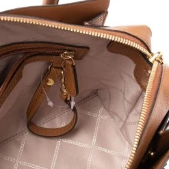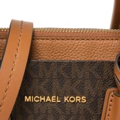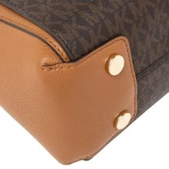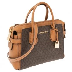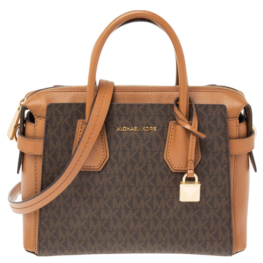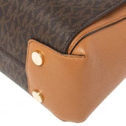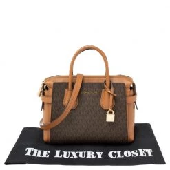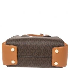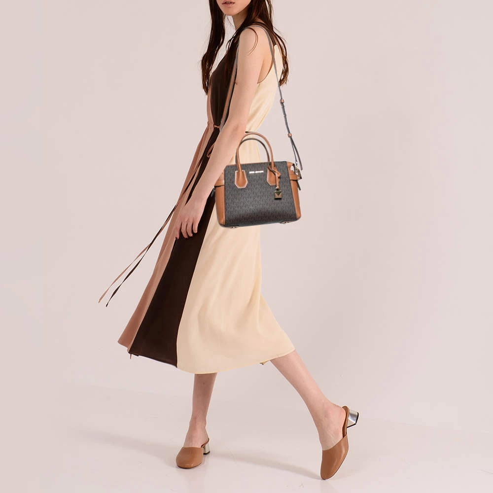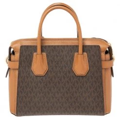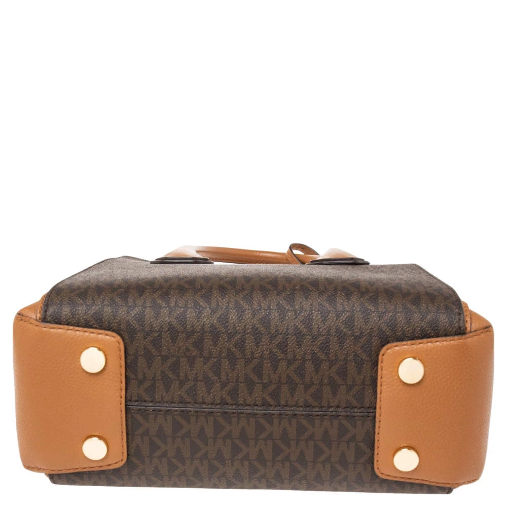 Made from signature canvas and leather, this Michael Kors satchel brings a convenient size and a refined appeal. It features two handles, a detachable strap, gold-tone hardware, and a nylon-lined interior.