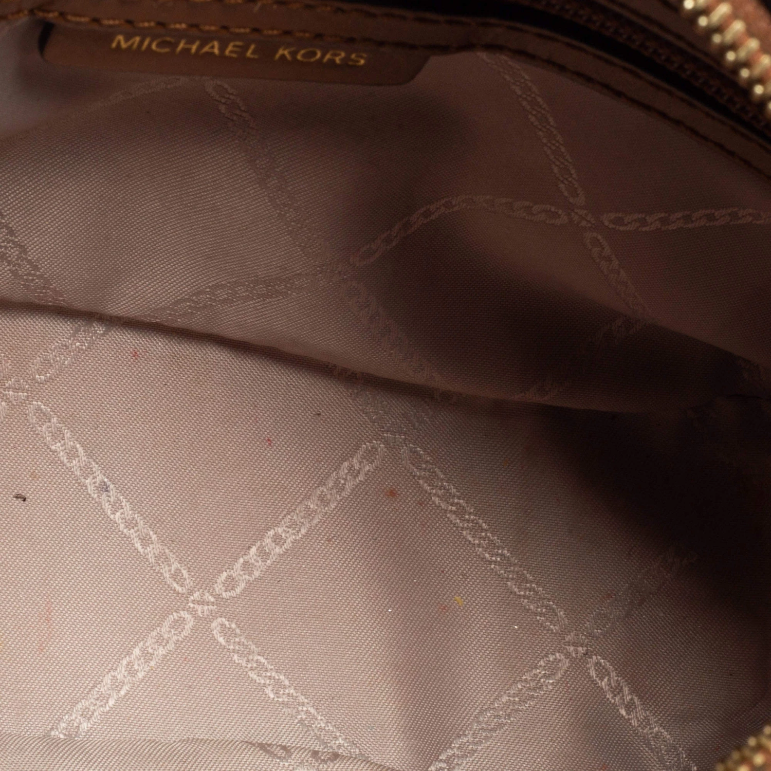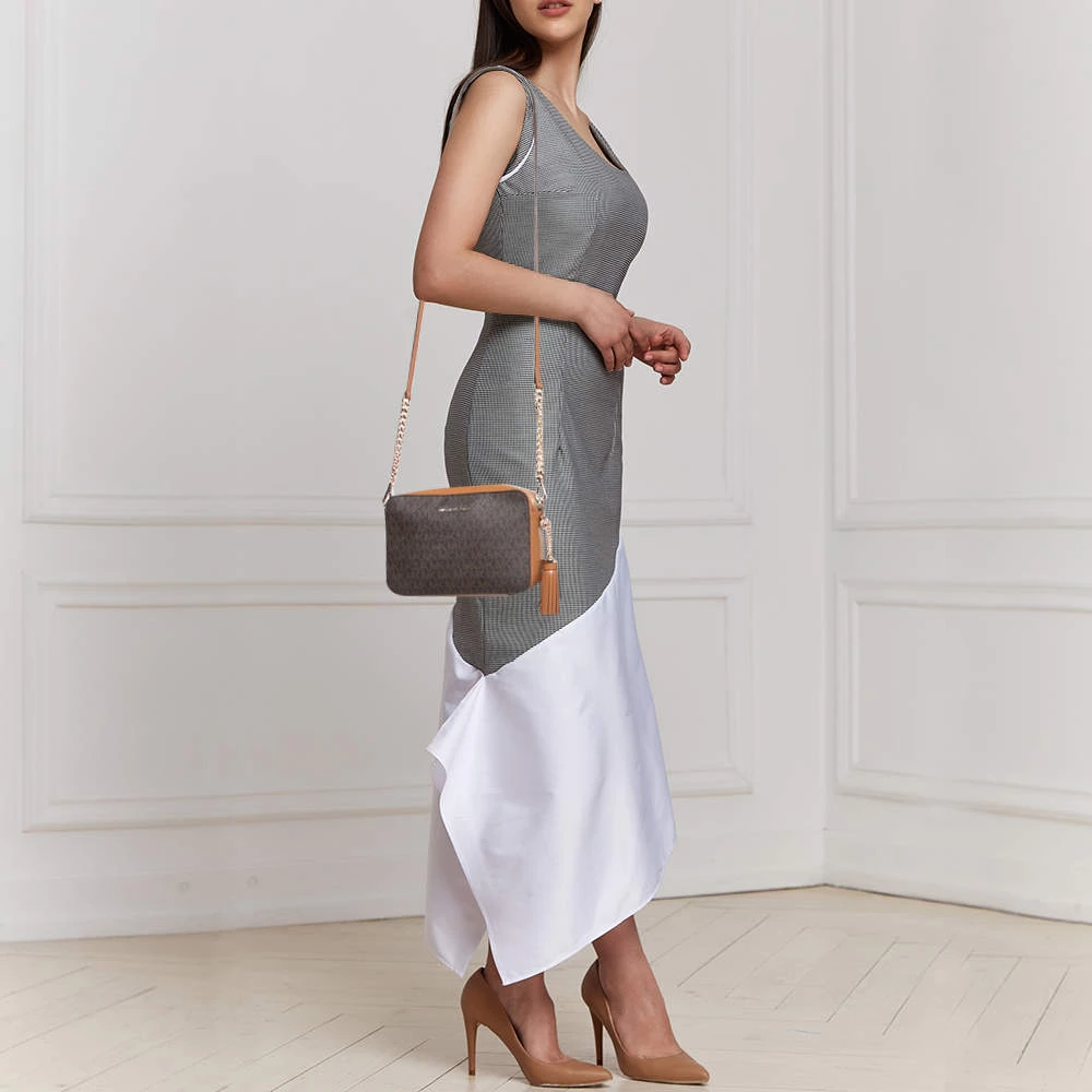 This Michael Kors bag is beautiful in so many ways. From its design to its compact structure, the crossbody bag in signature coated canvas and leather offers charm as well as function. It flaunts a long shoulder strap for you to swing and a fabric interior to hold your little essentials.