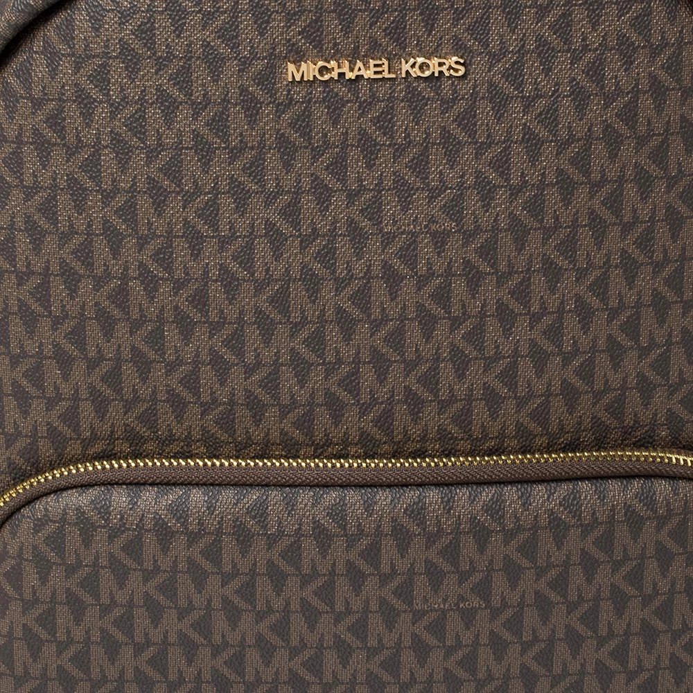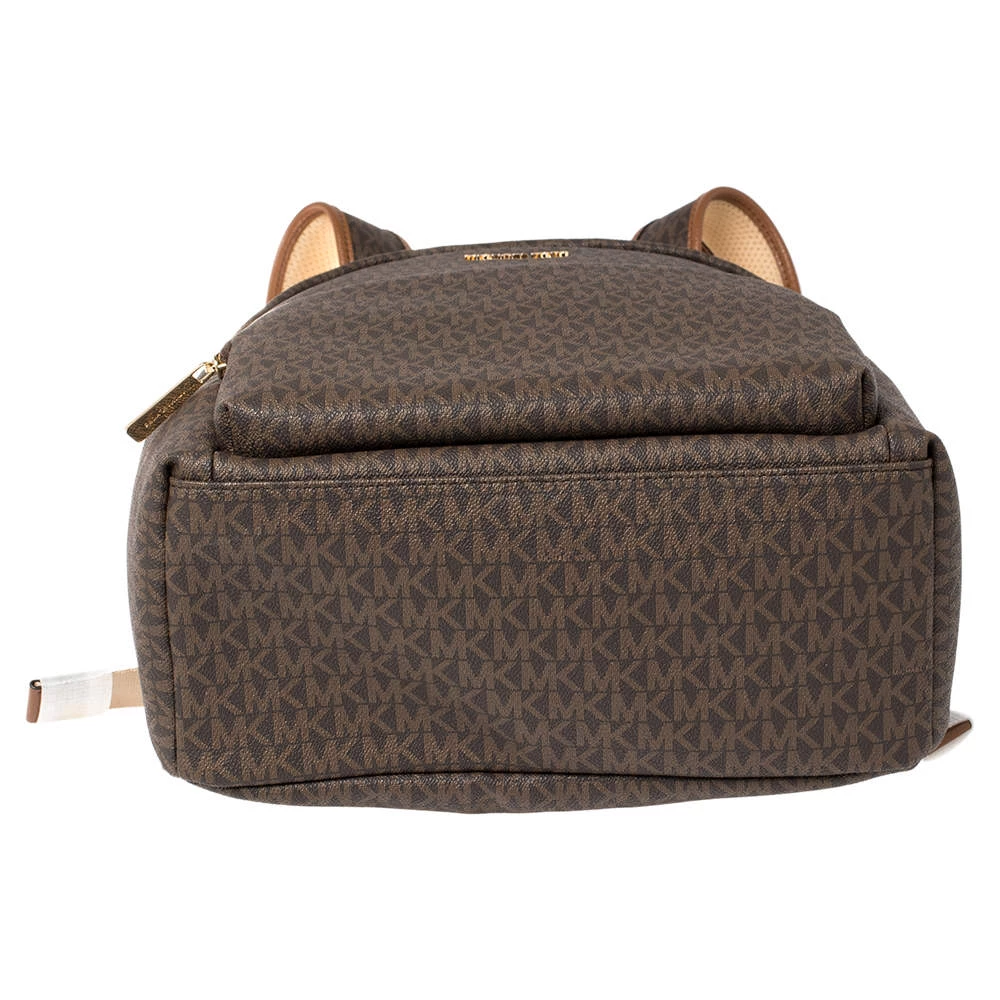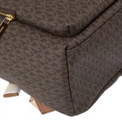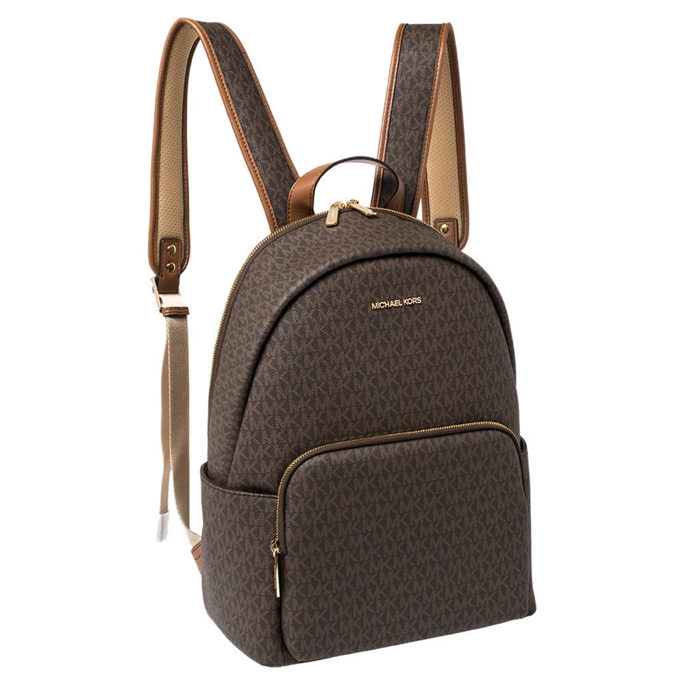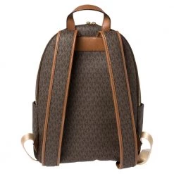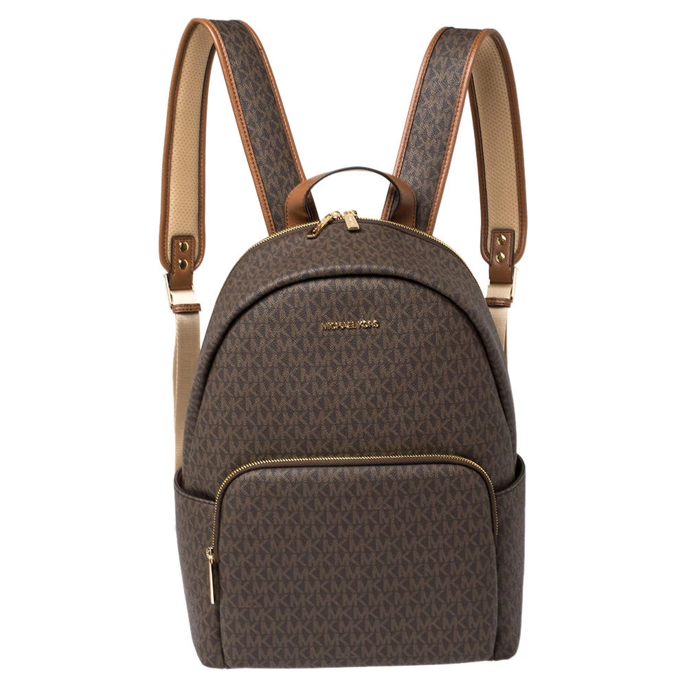 Designed with love, this Michael Kors backpack is crafted from brown signature coated canvas. It comes with a fabric-lined interior that houses enough space for essentials and a zip pocket at the front. The backpack features a top handle and two shoulder straps.