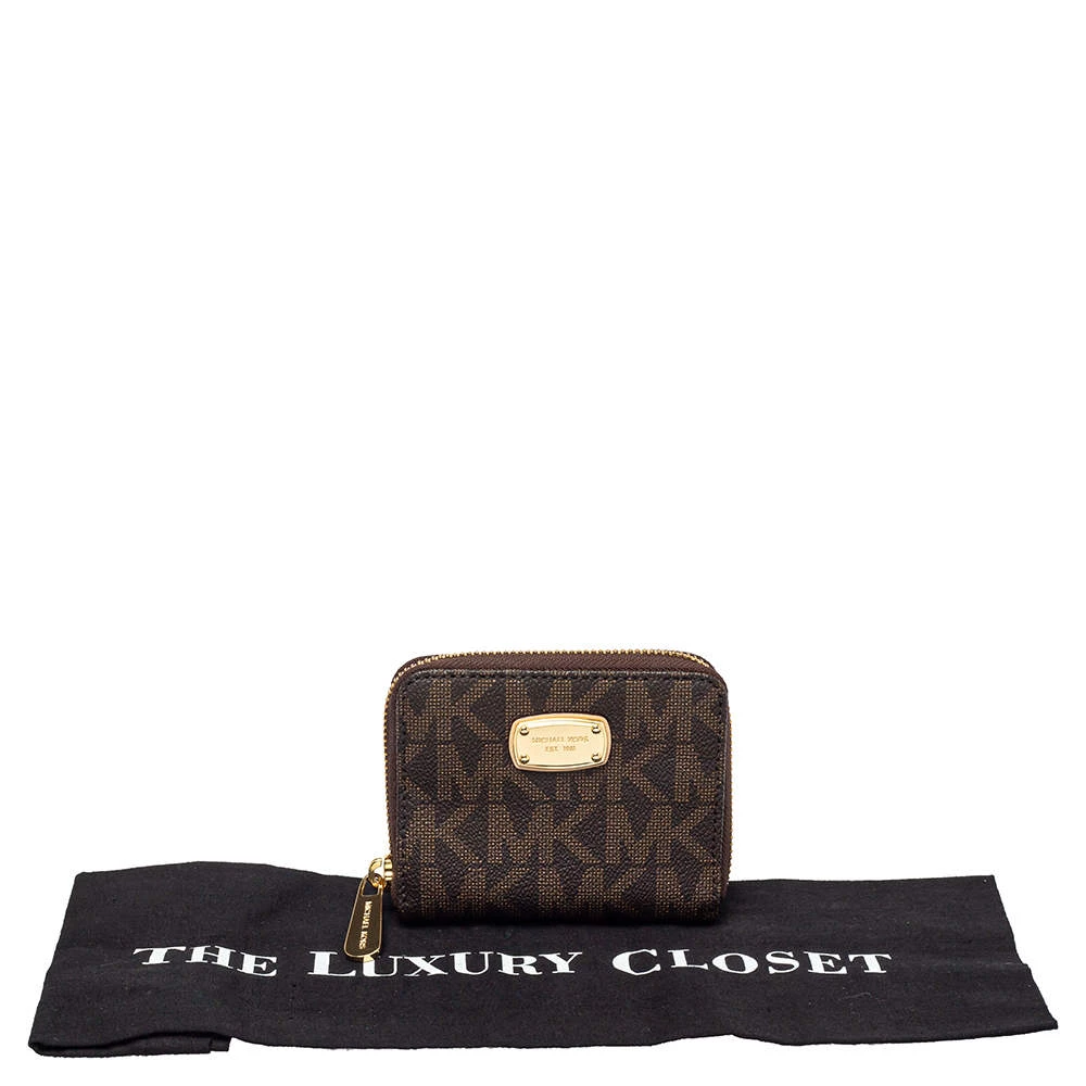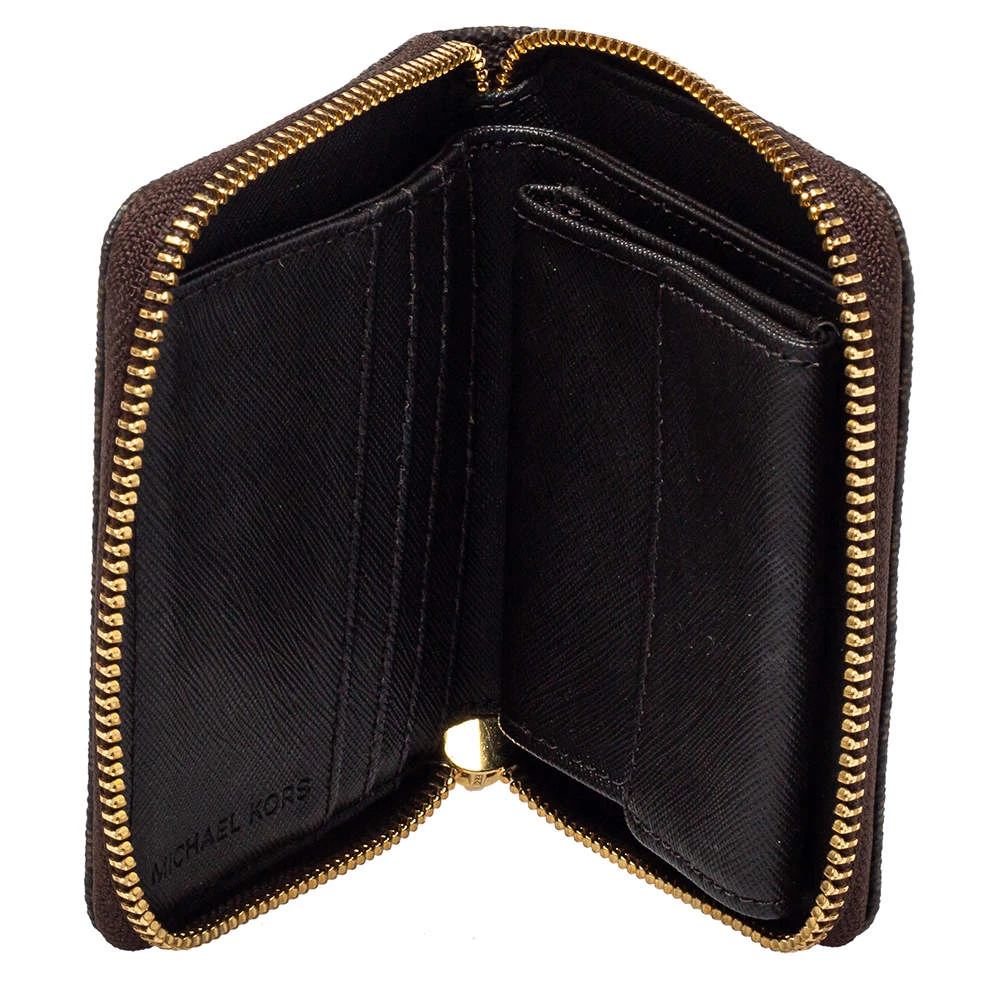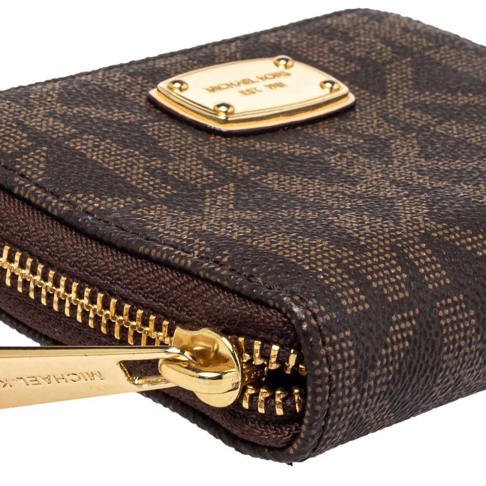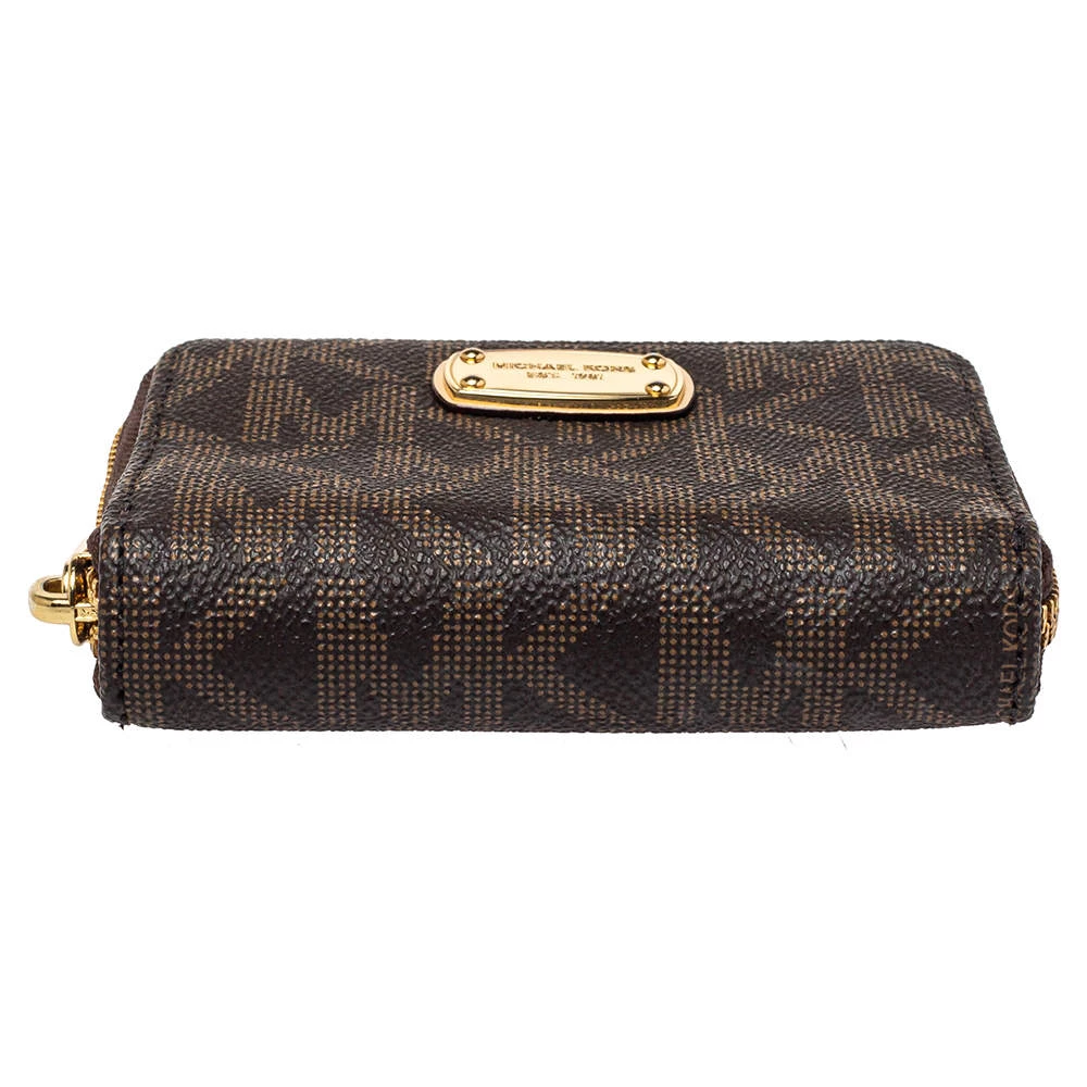 This wallet is a suave creation from the house of Michael Kors. Crafted from signature canvas, the wallet is adorned with a logo plaque and secured with a zip-around closure.