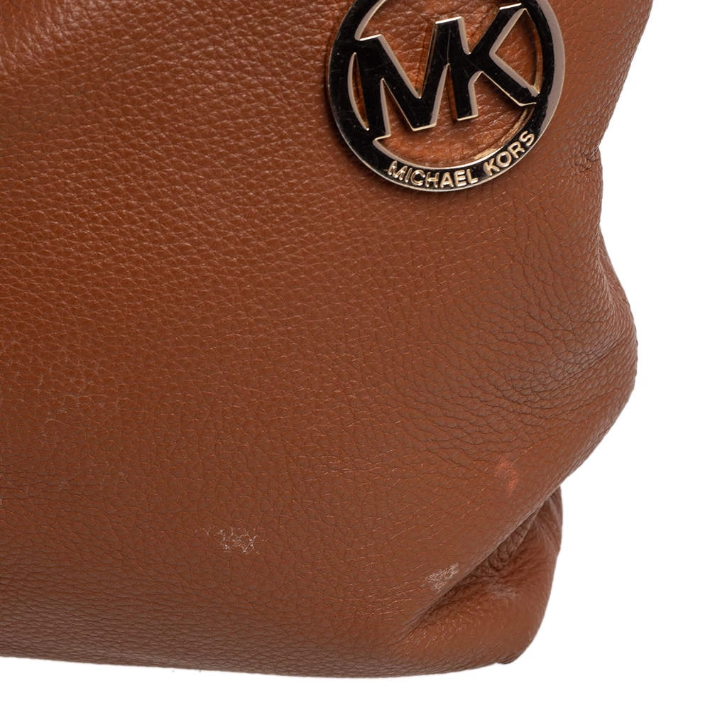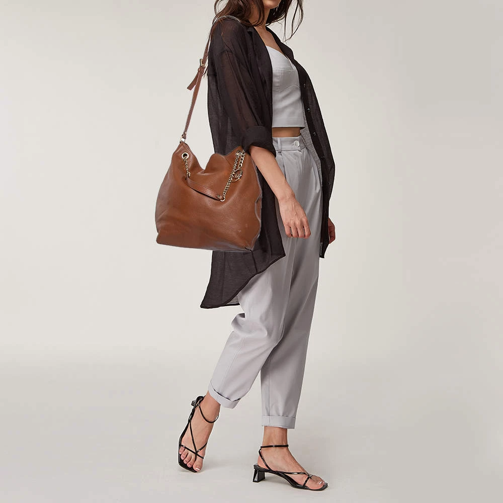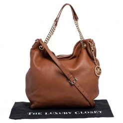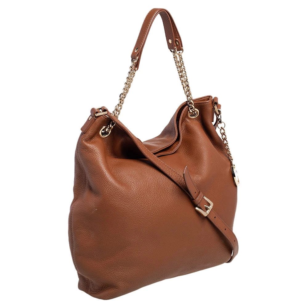 Designed with love, this Jet Set hobo by Michael Kors is crafted from brown leather. It comes with a fabric-lined interior and gold-tone hardware. The hobo features a shoulder strap and two handles.
