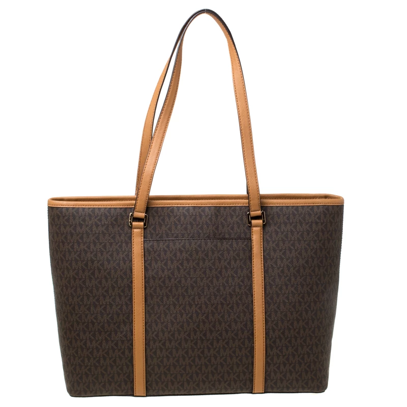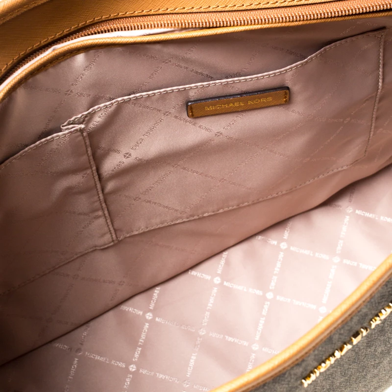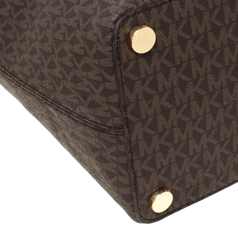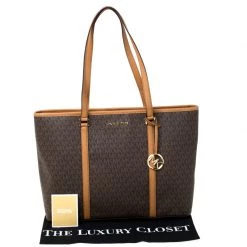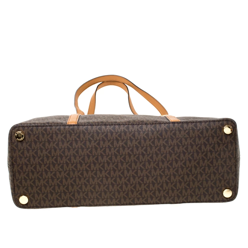 Spacious and captivating, this Sady tote is from Michael Kors. It has been crafted from signature canvas and enhanced with leather. It is equipped with two shoulder handles, an MK charm, and a well-sized nylon interior.