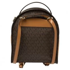 This Michael Kors Jessa backpack will come in handy for daily use or as a style statement. It is crafted from leather and signature canvas designed with the MK logo on the front for a signature finish. The creation comes with a front pocket for easy organization. Two shoulder straps and a small top handle make it ready to be yours.