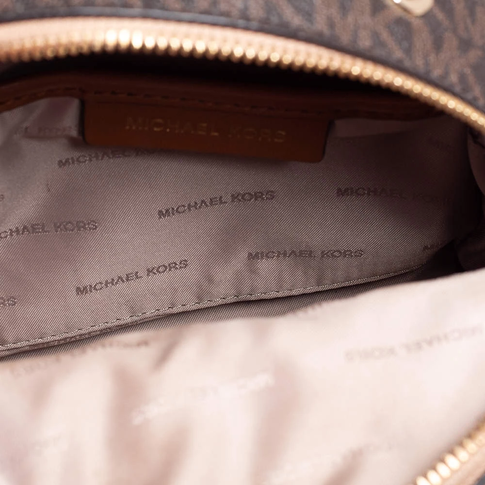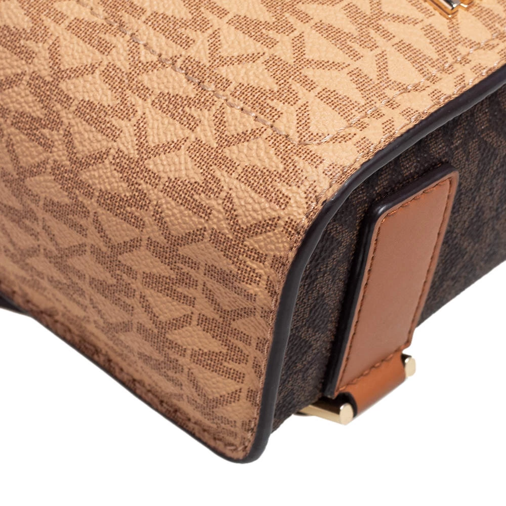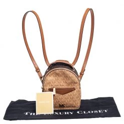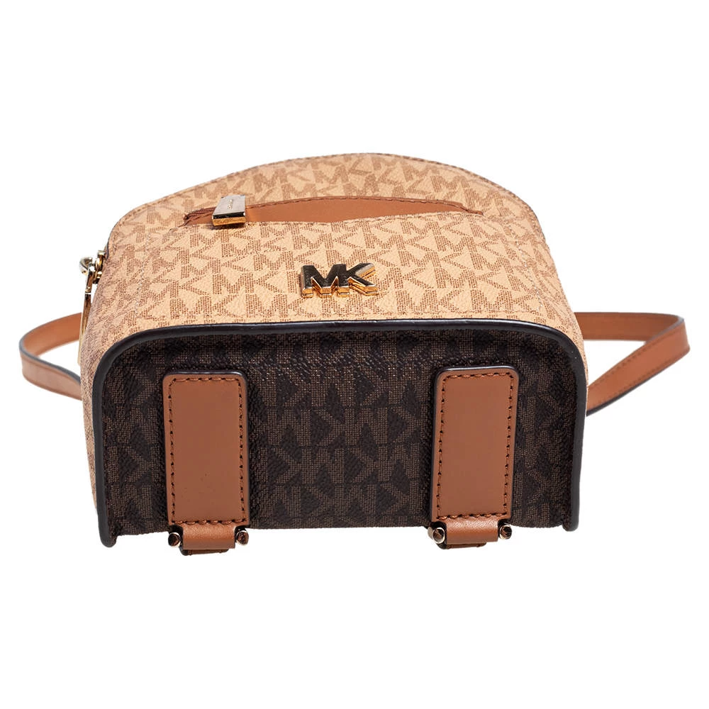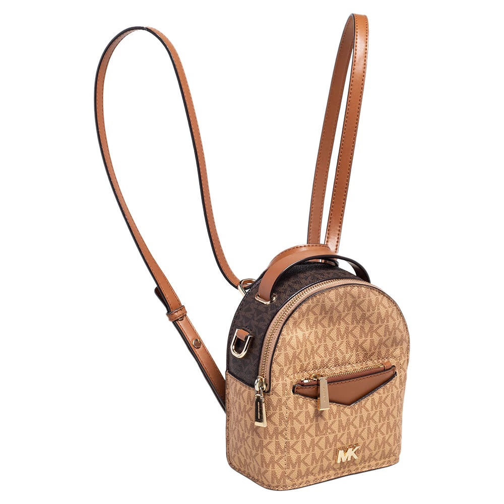 This Michael Kors Jessa backpack will come in handy for daily use or as a style statement. It is crafted from leather and signature canvas designed with the MK logo on the front for a signature finish. The creation comes with a front pocket for easy organization. Two shoulder straps and a small top handle make it ready to be yours.