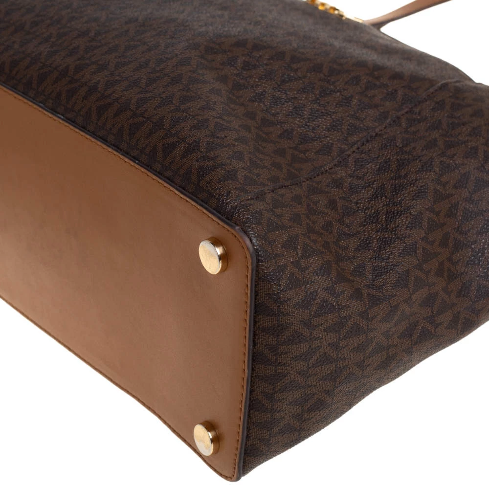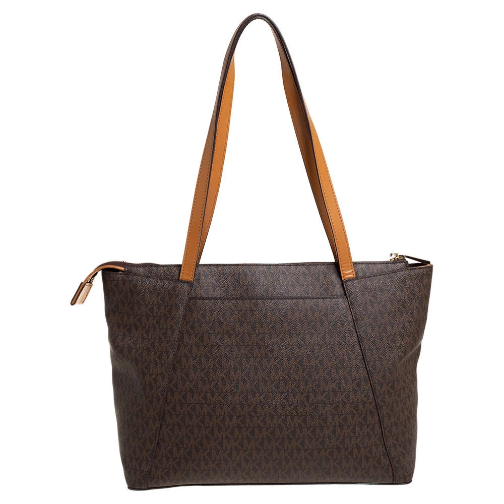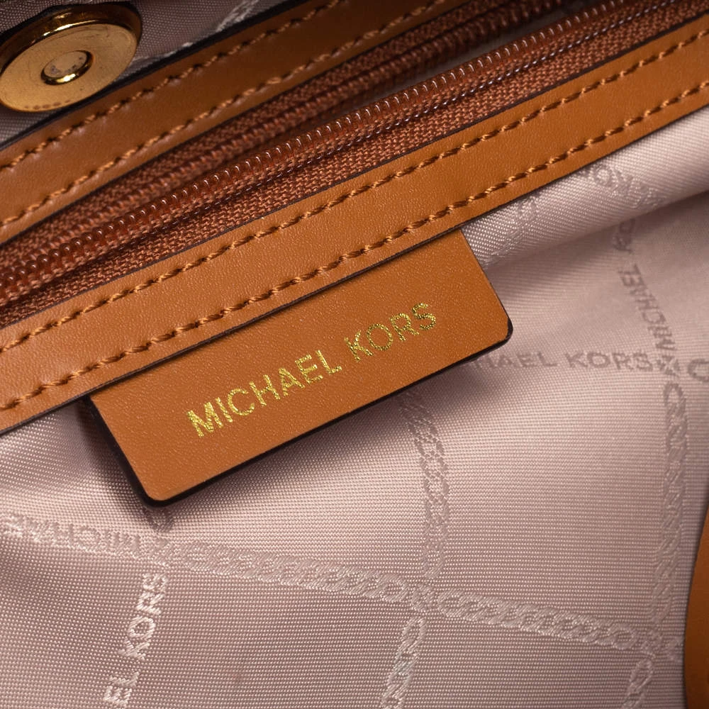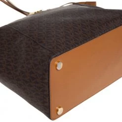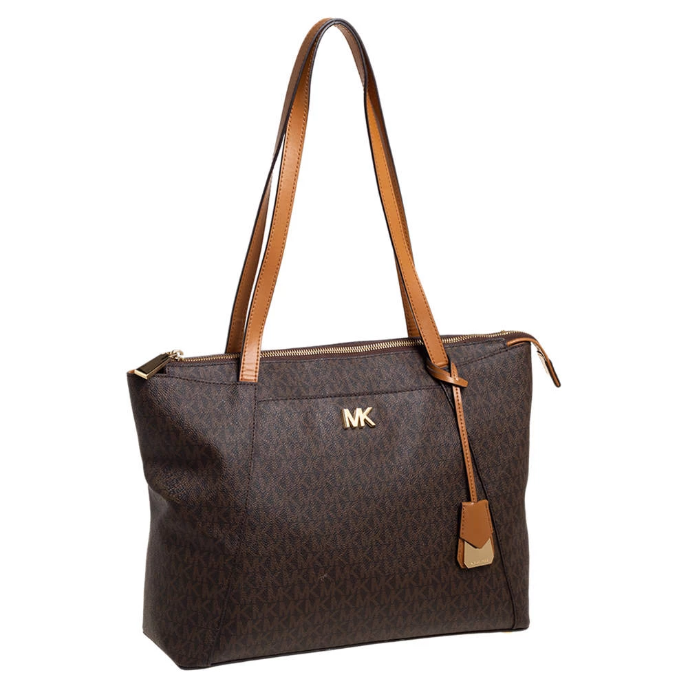 This Michael Kors Maddie tote will surely catch a lot of attention. It has been crafted from signature coated canvas and leather and secured with top snap button fastening. Set on protective base studs, this bag comes fitted with two top handles and a fabric-lined interior furnished with a zipper pocket that can neatly organize all your essentials with great ease.