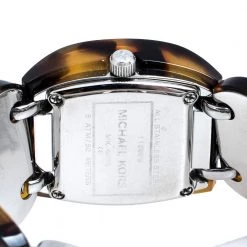 Designed with a fine blend of luxury and craftsmanship, this watch from Michael Kors is sure to delight your style. Made from tortoise acetate and stainless steel, it has a brown dial with index hour markers and three hands. The smooth bezel and push-button clasp on the matching bracelet make the quartz timepiece ready to be yours.