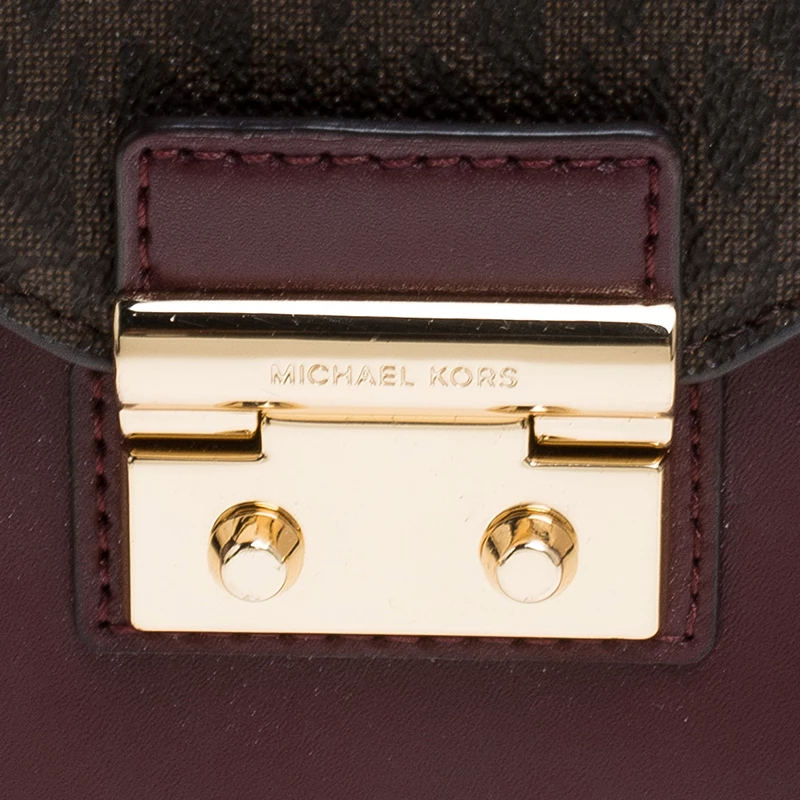 You will enjoy parading this bag from Michael Kors. It comes made from leather and features a single top handle, a shoulder strap and a signature canvas flap. It is equipped with a nylon-lined interior meant to hold all your daily essentials with ease.