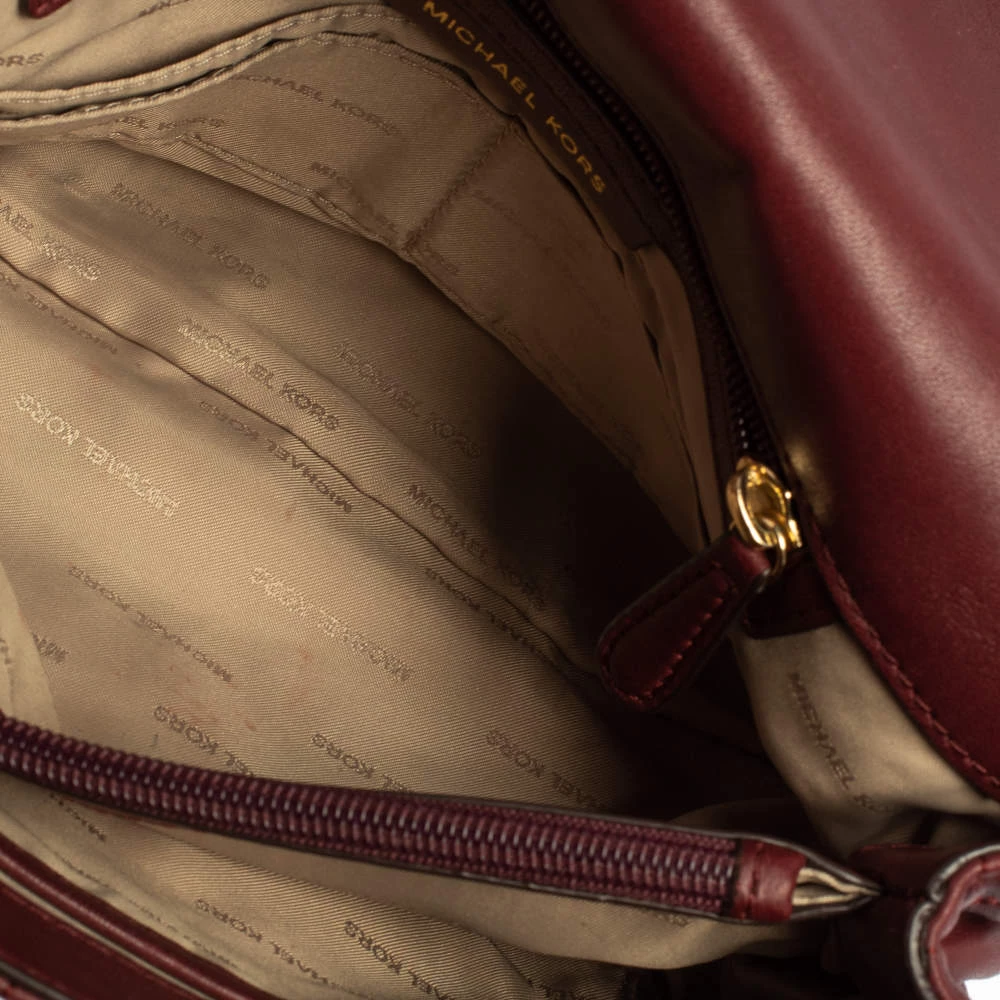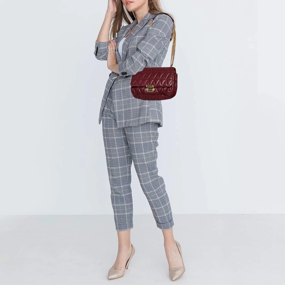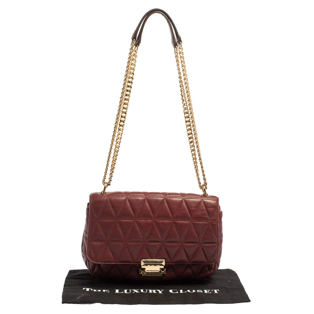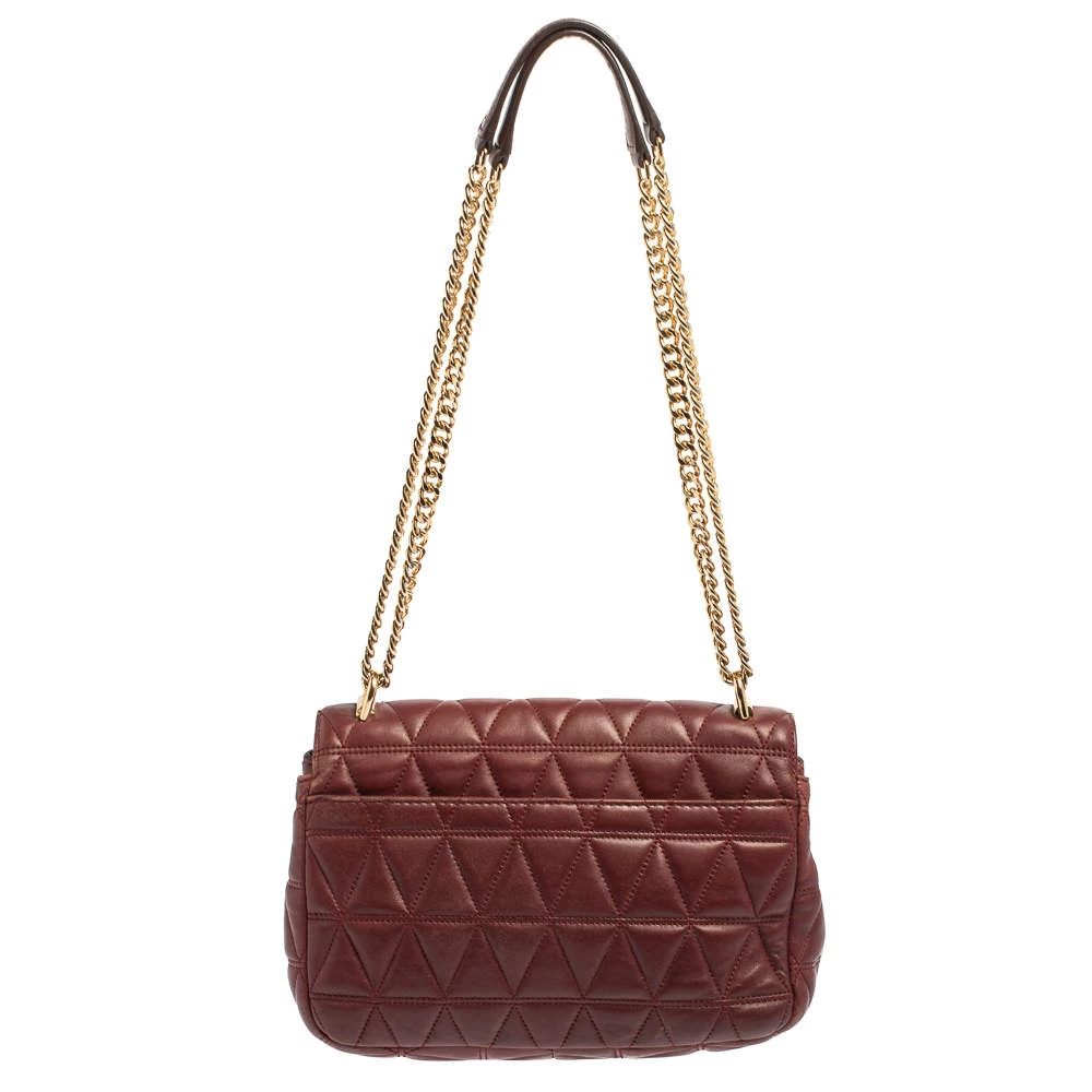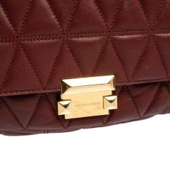 This stylish shoulder bag hails from the house of Michael Kors and will deliver a signature touch to all your looks. It has been crafted from quilted leather. The burgundy-hued bag has a gold-tone lock closure on the front flap, an exterior pocket, and a spacious interior. it is finished with twin chain straps that have leather shoulder rests.