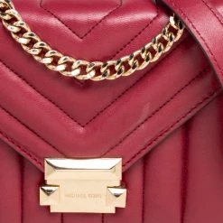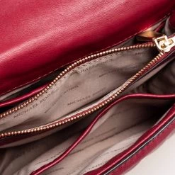 Designed to perfection and crafted from fine quality leather, this Michael Kors shoulder bag can be your go-to accessory. Bringing elegance and charm to your daily style, this structured burgundy piece has a front flap that opens to a spacious interior. It is finished with gold-tone hardware and a chain-link strap.