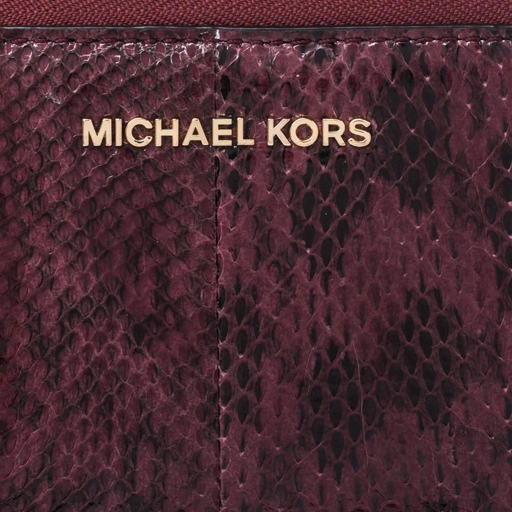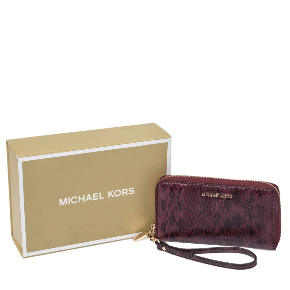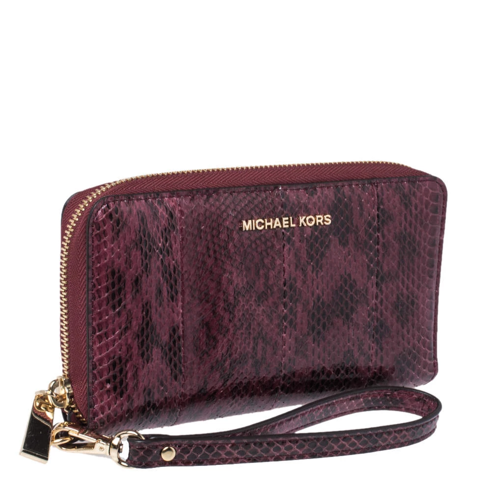 This wristlet wallet by Michael Kors makes for a great accessory. It is crafted from exotic python, features a zip closure that opens to a suede and leather interior that can hold all your essentials in an organized manner. It is finished with gold-tone hardware. (Available for UAE Customers Only)