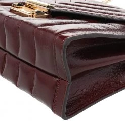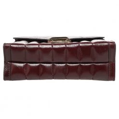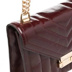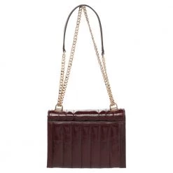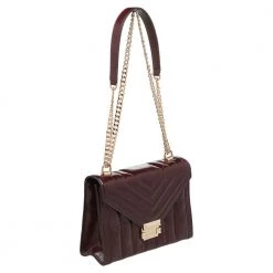 This Michael Kors shoulder bag is crafted with burgundy quilted leather on the exterior with a flap-style closure. It carries a spacious interior and is the perfect accessory to complete your evening wear.