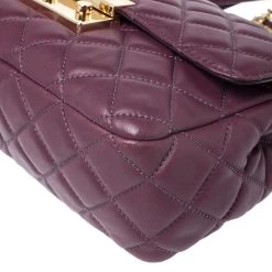 Elevate your style with this gorgeous Sloan bag by Michael Kors. Crafted from burgundy quilted leather the bag features gold-tone hardware. It has a spacious fabric-lined interior that has a zip pocket. This beauty is complete with dual chain and leather handles.