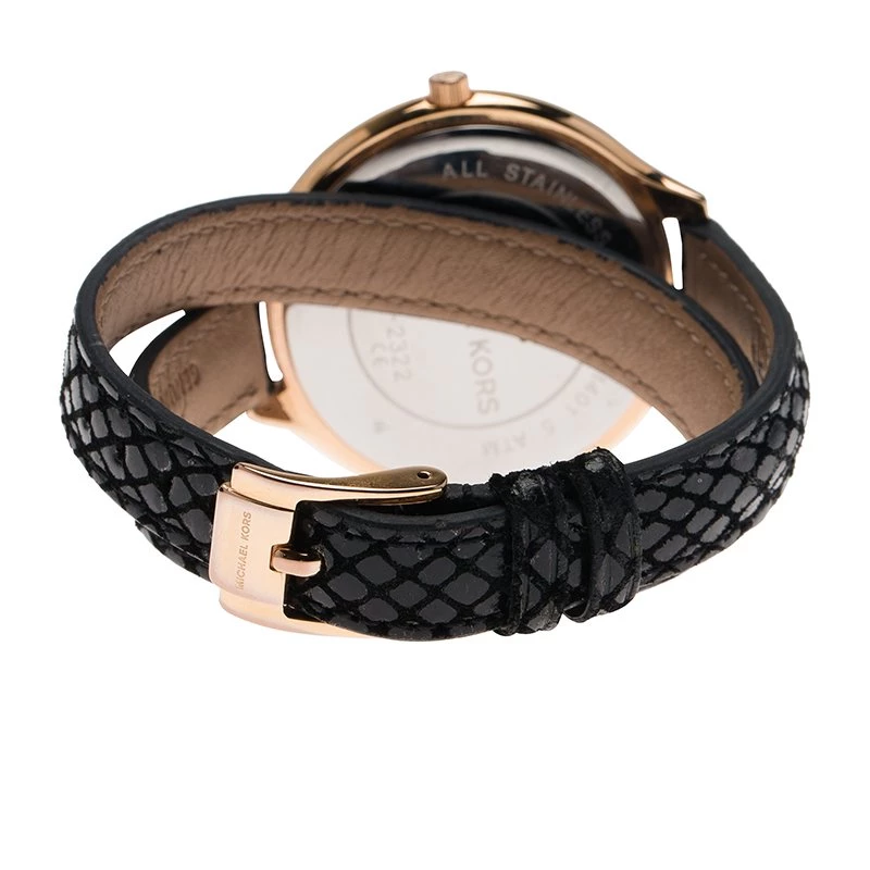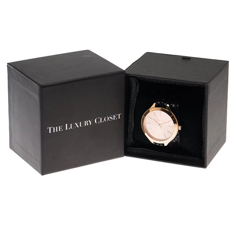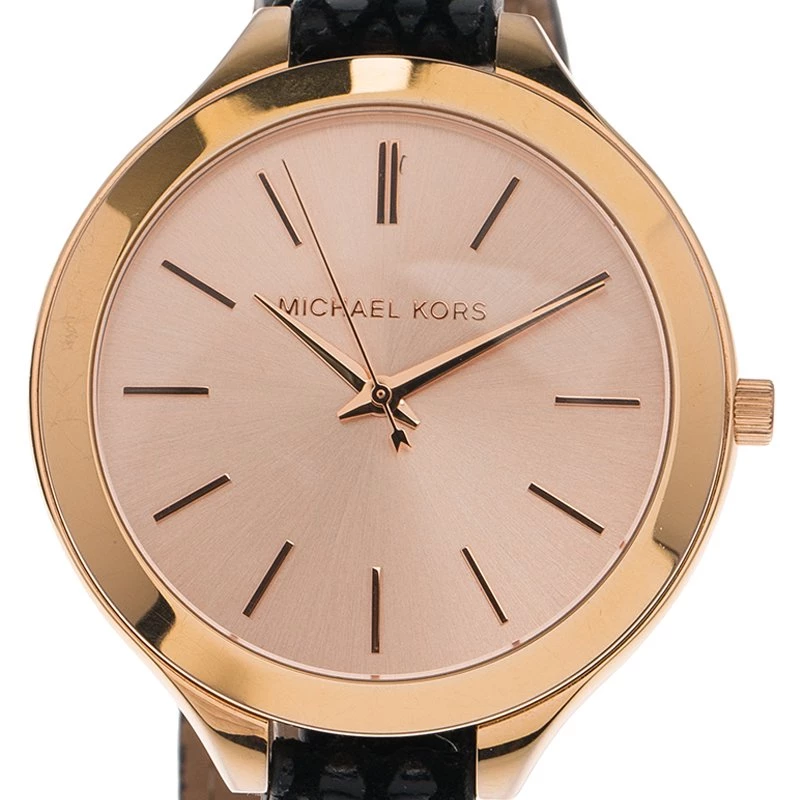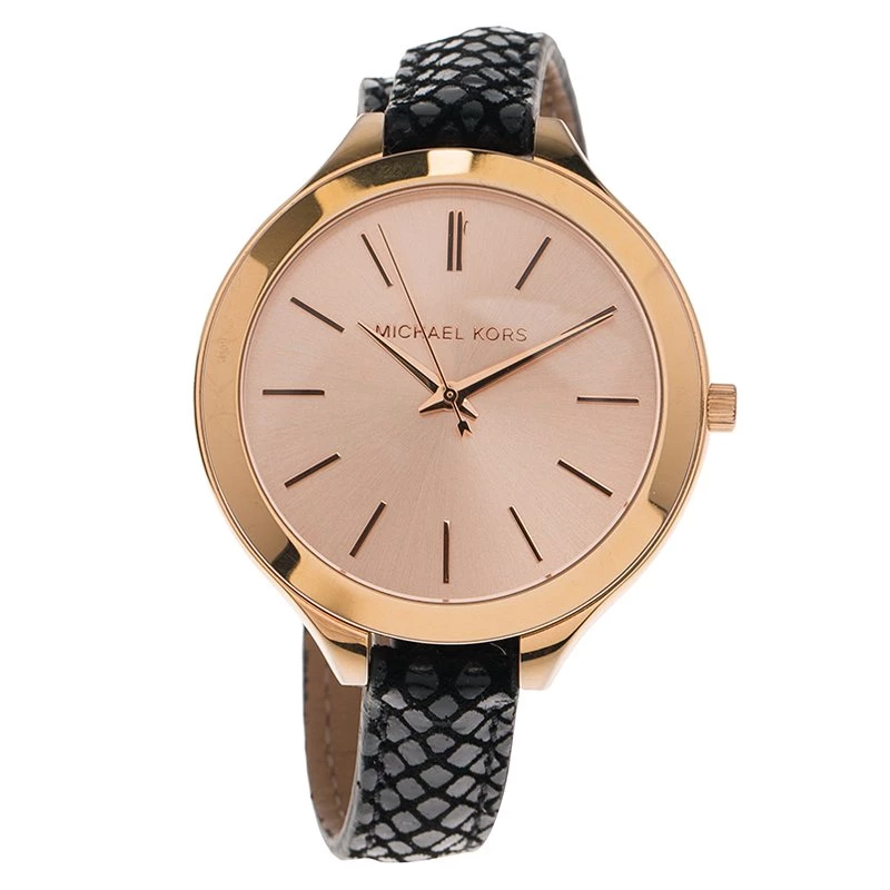 Often compared to the design aesthetics of Ralph Lauren and Calvin Klein, Michael Kors is one of the most celebrated American designer. This watch is an exclusive one from the Slim Runway series. The gold-plated bezel houses a champagne dial with gold-plated bar hour indices and hands. The chic bracelet in textured leather fits the wrist with a pin buckle fastening. The watch is 50M water resistant and features a Quartz movement.