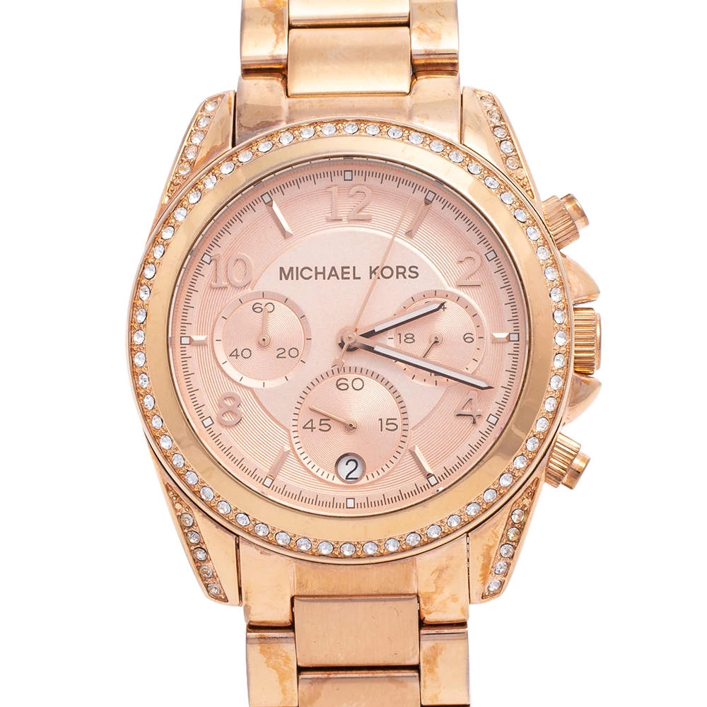 Designed with a fine blend of luxury and craftsmanship, this Blair watch from Michael Kors is sure to delight your style. Made from rose gold-tone stainless steel, it has crystal embellishments on the bezel and lugs and a round dial with three sub-dials. 100 meters water resistance and push-button clasp make the quartz timepiece ready to be yours.