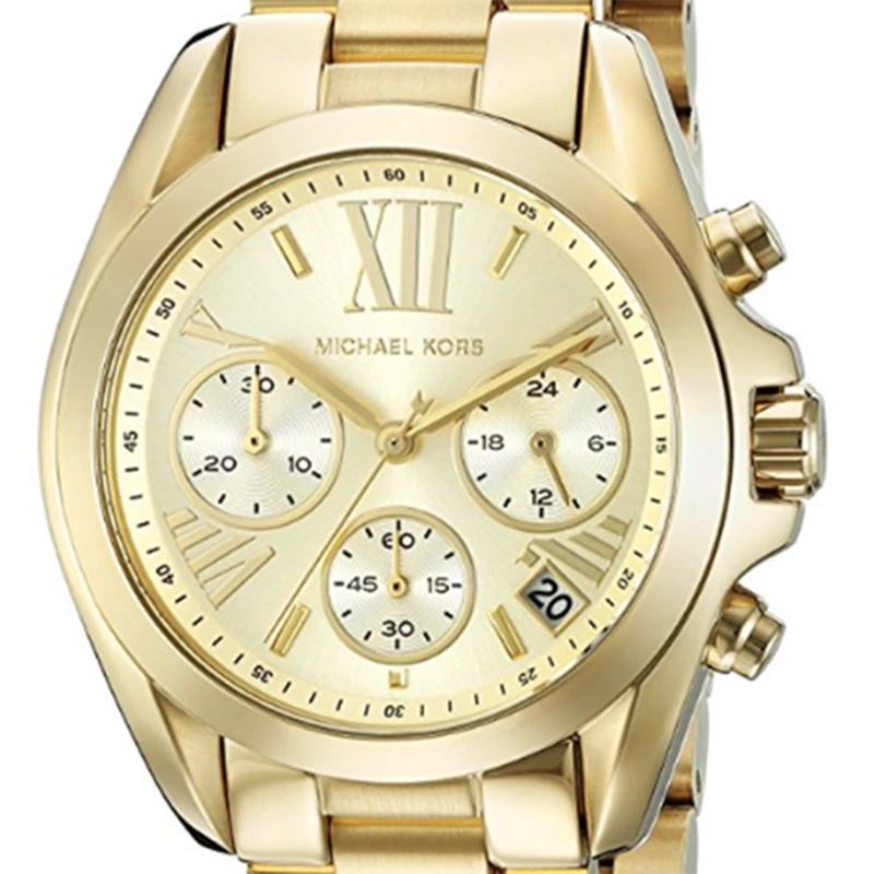 With a design that is very iconic with the style of Michael Kors watches, this Bradshaw watch is sure to stay with you for years to come. Constructed in yellow gold plated stainless steel metal, this watch features a champagne dial three sub dials and roman numbered hour indexes.