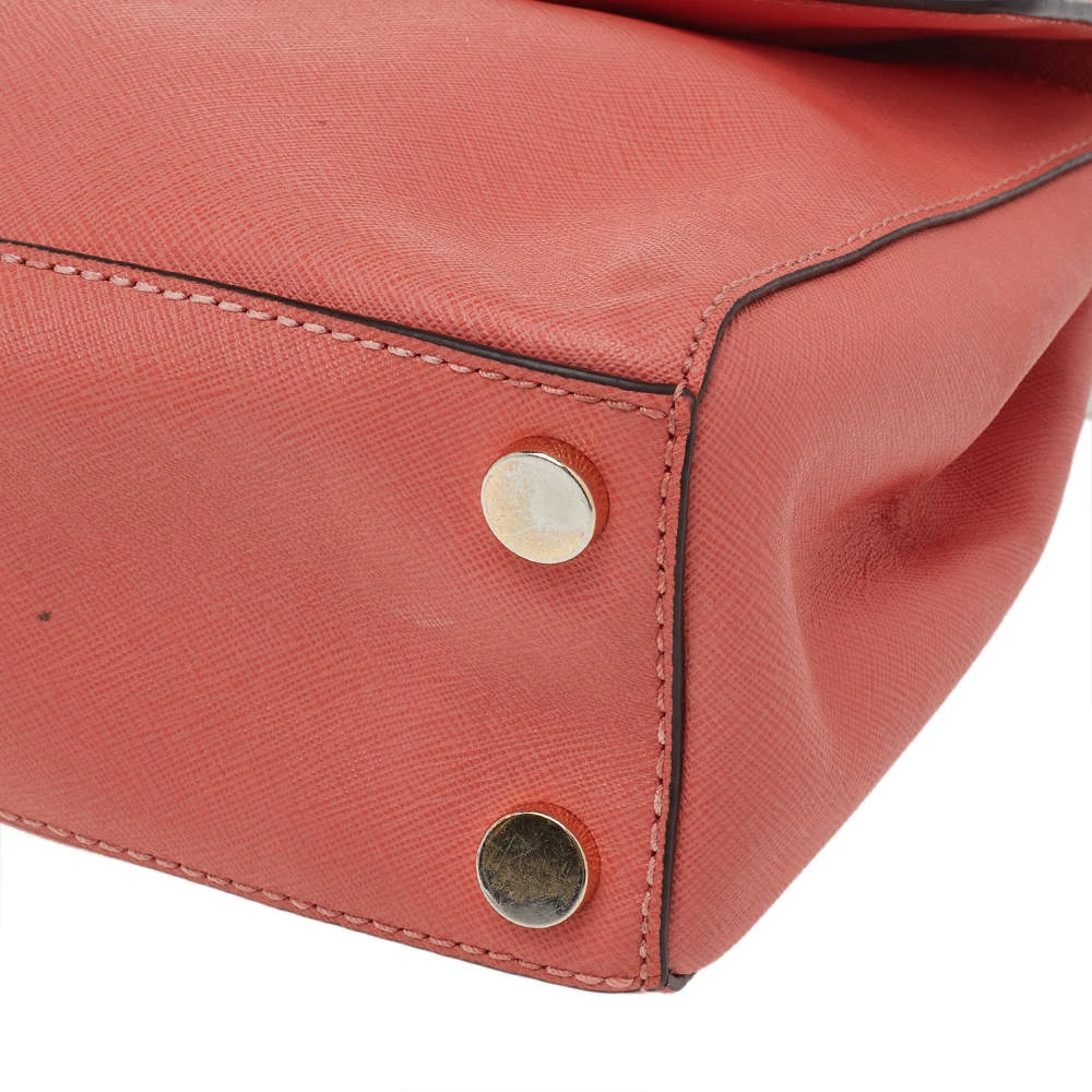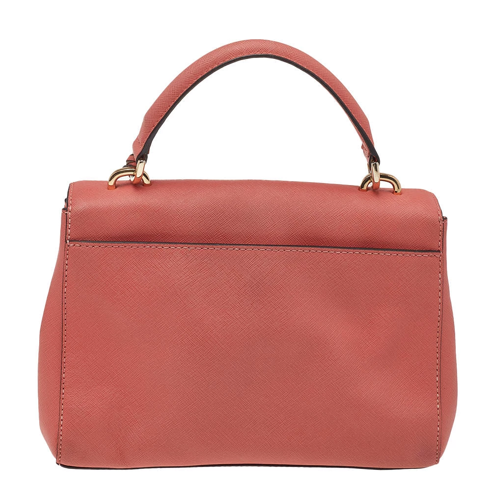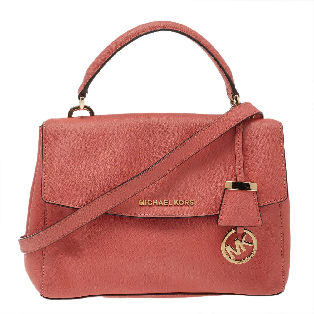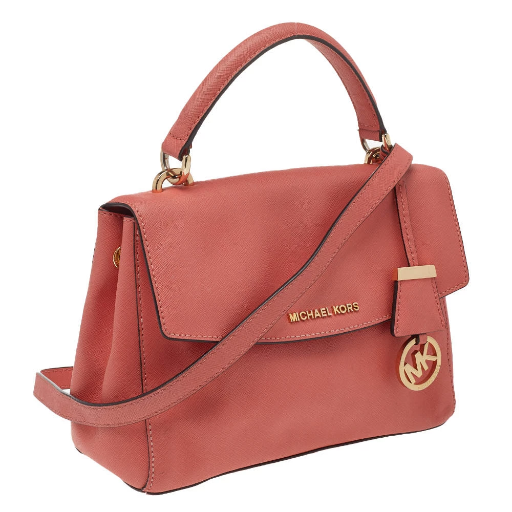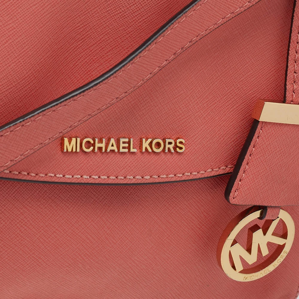 This pink-colored satchel comes from the fashion house of Michael Kors. Crafted from leather, it features a durable nylon interior that ensures to house your lipstick, wallet, and other essentials. Designed with a flap closure, it flaunts gold-tone brand logo at the front.